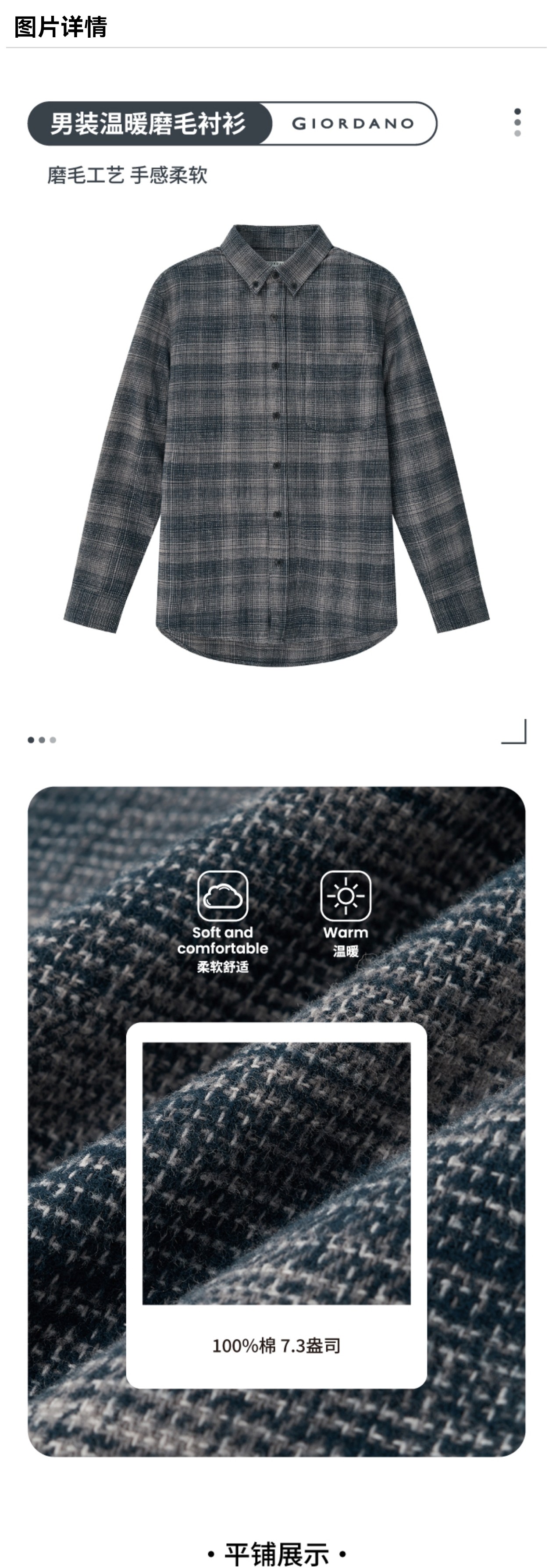 佐丹奴男装25年商场同款秋冬款纯棉厚衬衫01045625