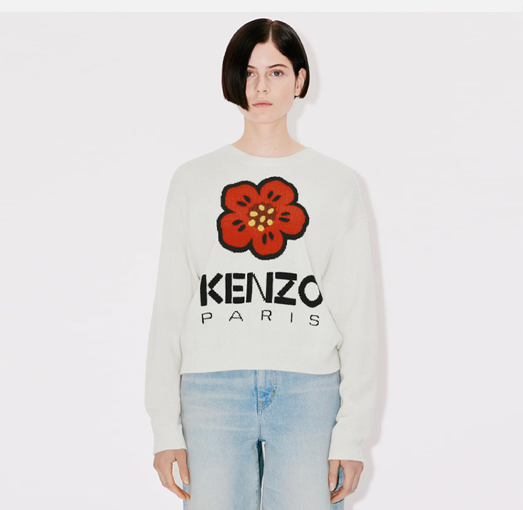 【一】KENZO 高田贤三 女士“BOKE FLOWER”徽章羊毛针织衫 米色 FD62 PU430 3LD 02