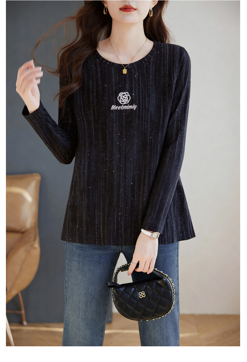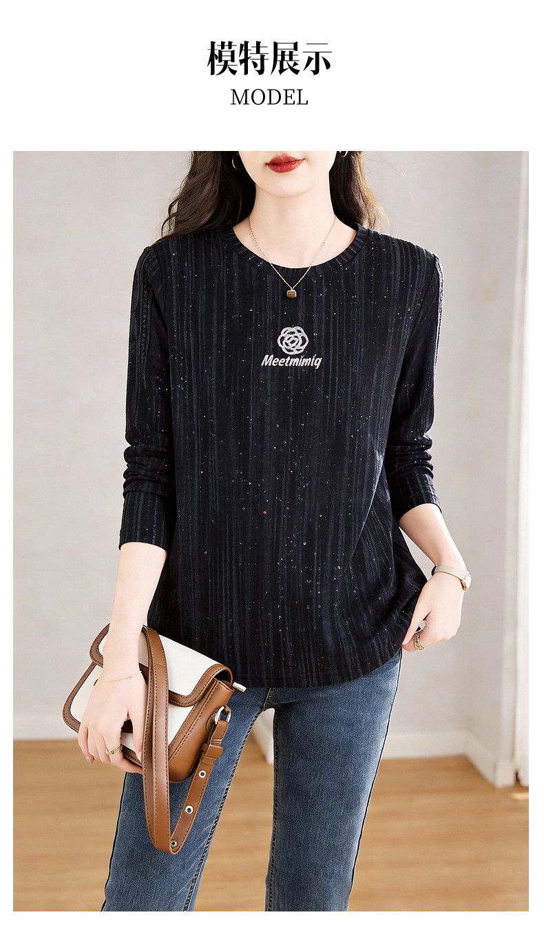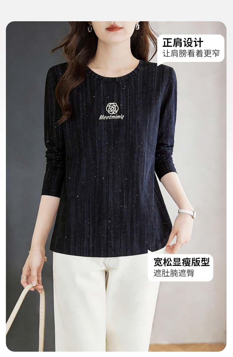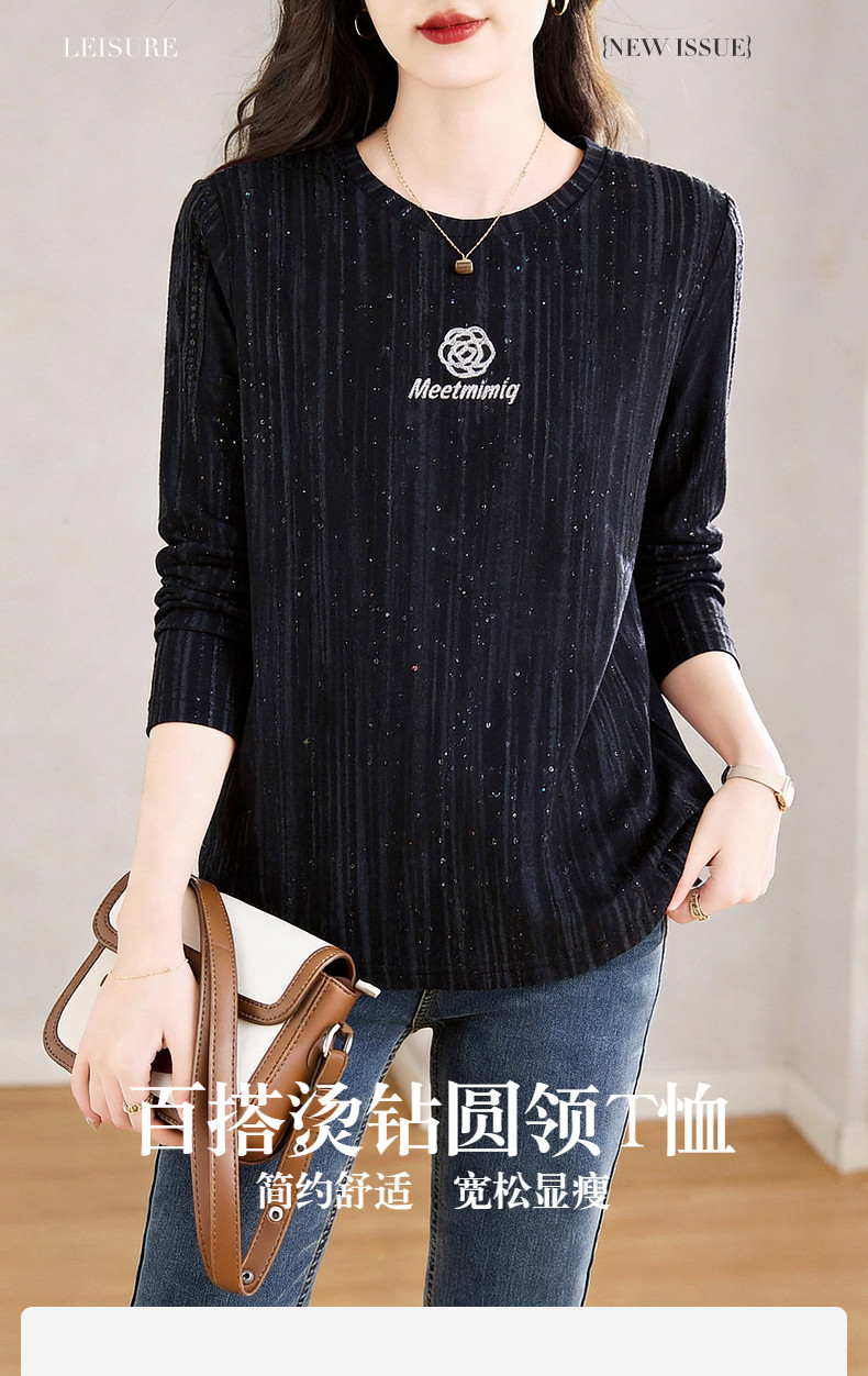 长袖T恤女士2026春季新款胖mm遮肉显瘦圆领内搭上衣宽松休闲大码