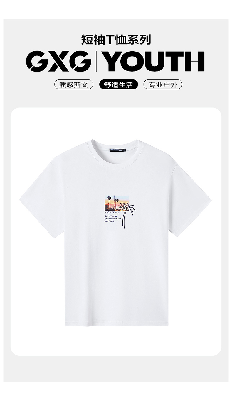 GXG男装【100%棉】夏季新品时尚风景印花男士圆领百搭短袖t恤K&C