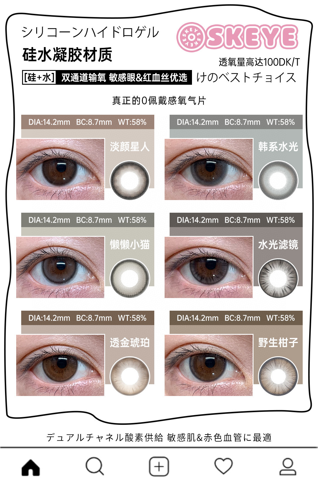 【透氧量100DK/T】Skeye硅水凝胶日抛10片活动(淡颜星人·慵懒小猫·透金琥珀·野生柑子·韩系水光·水光滤镜)