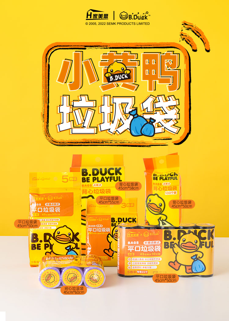 家美思B.Duck小黄鸭一次性黑色垃圾袋家用平口式