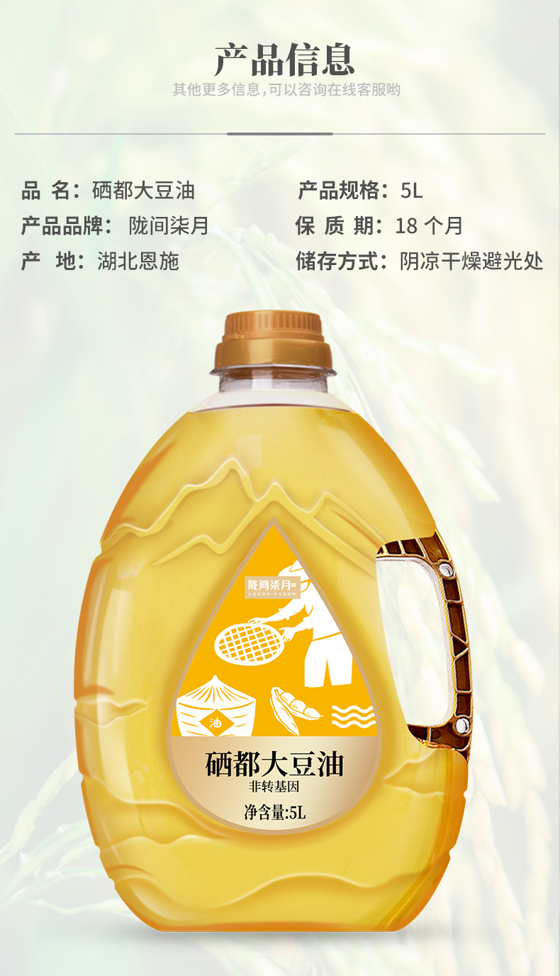 陇间柒月硒都大豆油5L非转基因瓶装一级色拉油家用食用植物油