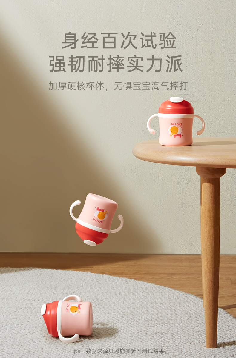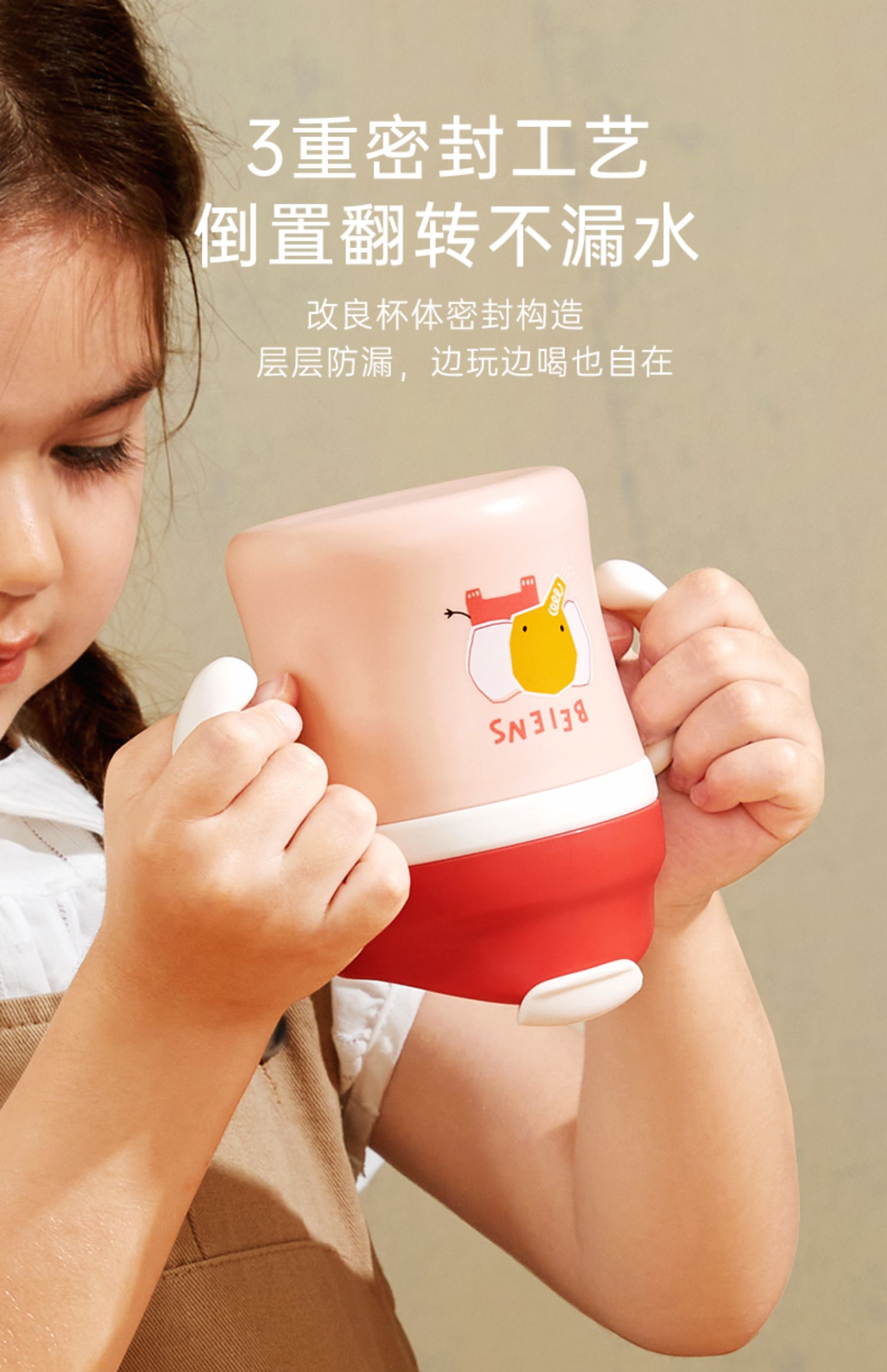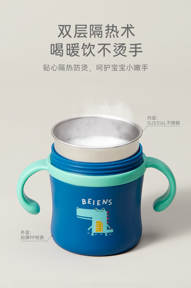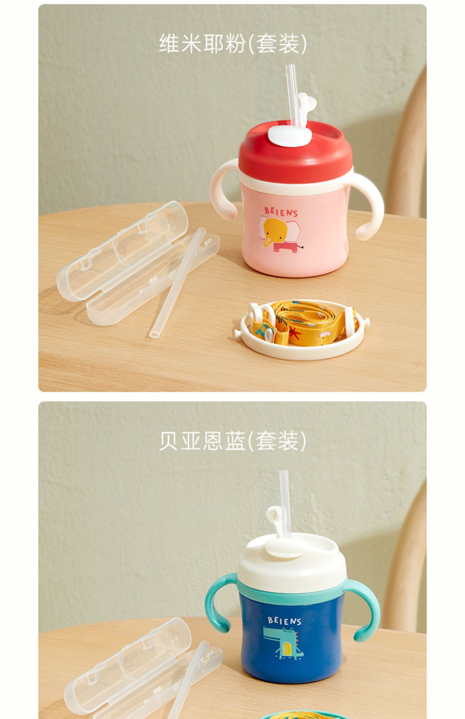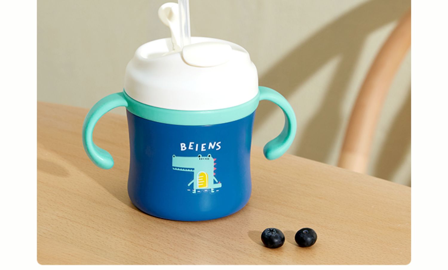 贝恩施牛奶杯儿童带刻度不锈钢防摔直饮吸管杯宝宝喝奶喝水学饮杯