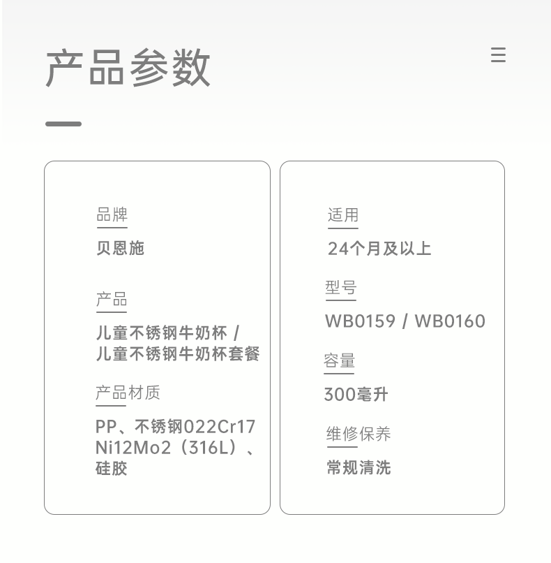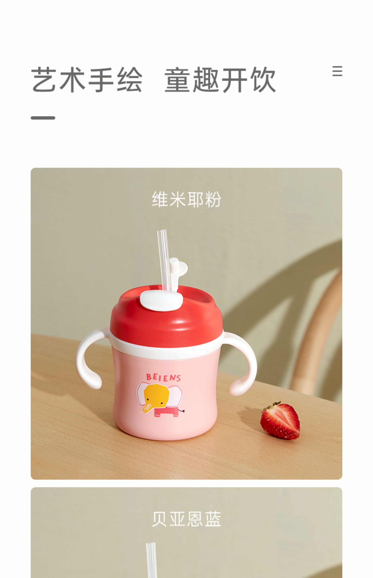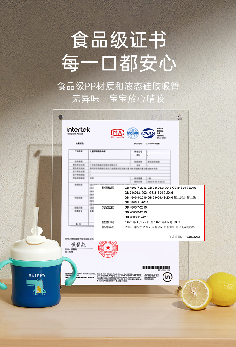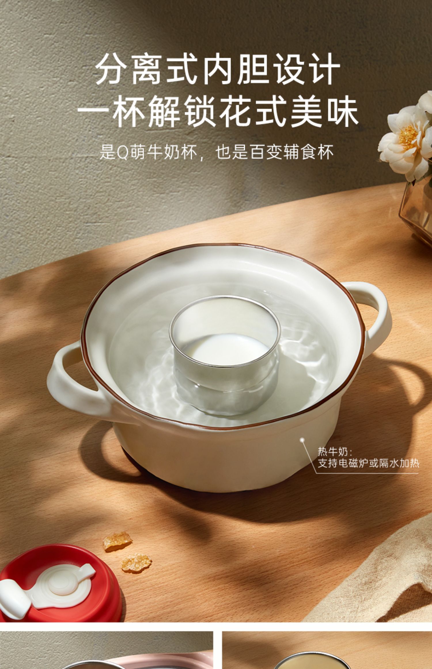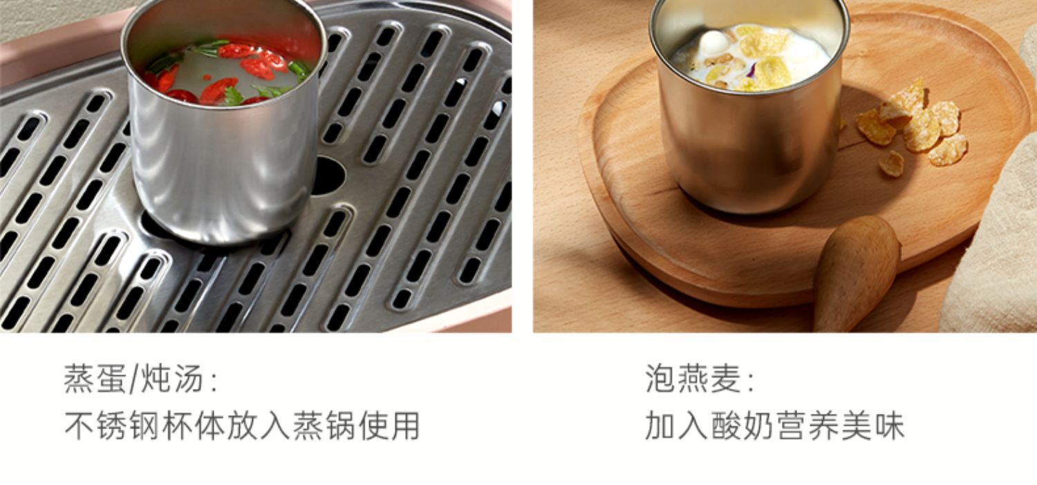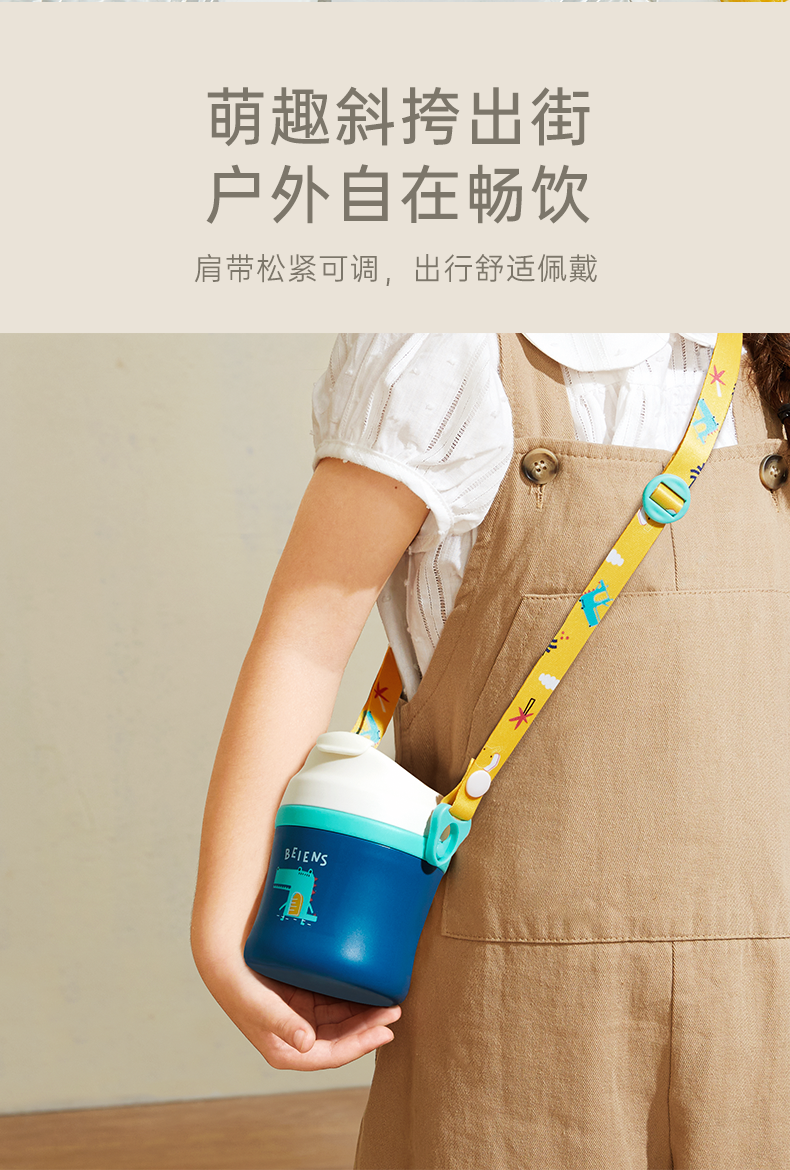 贝恩施牛奶杯儿童带刻度不锈钢防摔直饮吸管杯宝宝喝奶喝水学饮杯