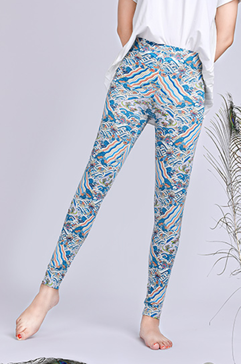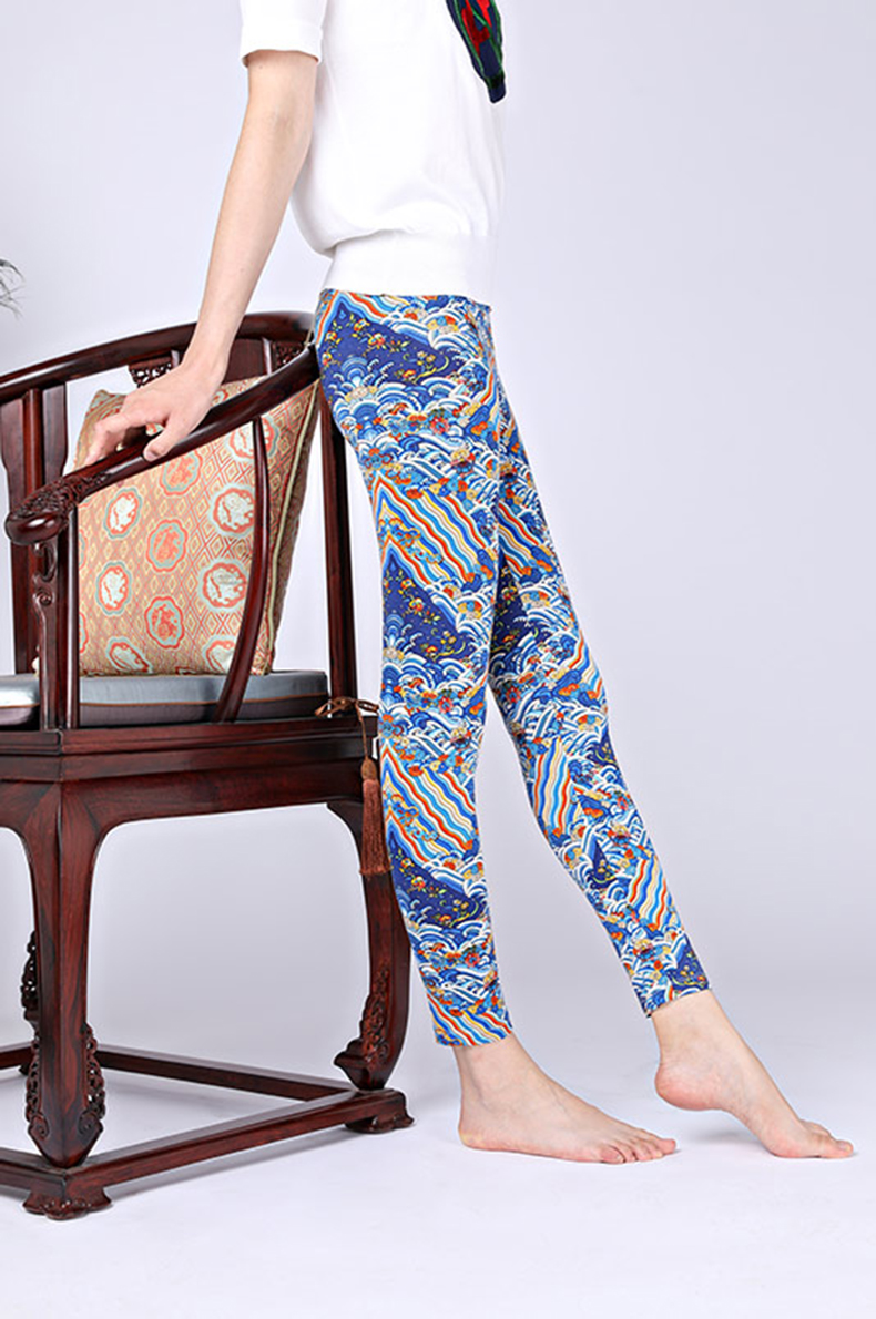 采用柔滑细腻的桑蚕丝混纺面料,弹力贴身,外穿打底皆宜,裤身搭配人们喜闻乐见的吉祥图案,表达了祈求福寿绵长的美好愿望。