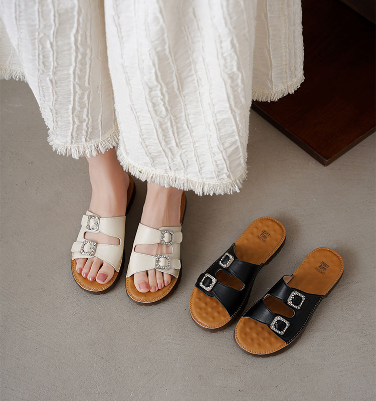【夏季新款】西村名物2025年夏季新款舒适平底包脚露趾后空拖鞋T25BJ20741