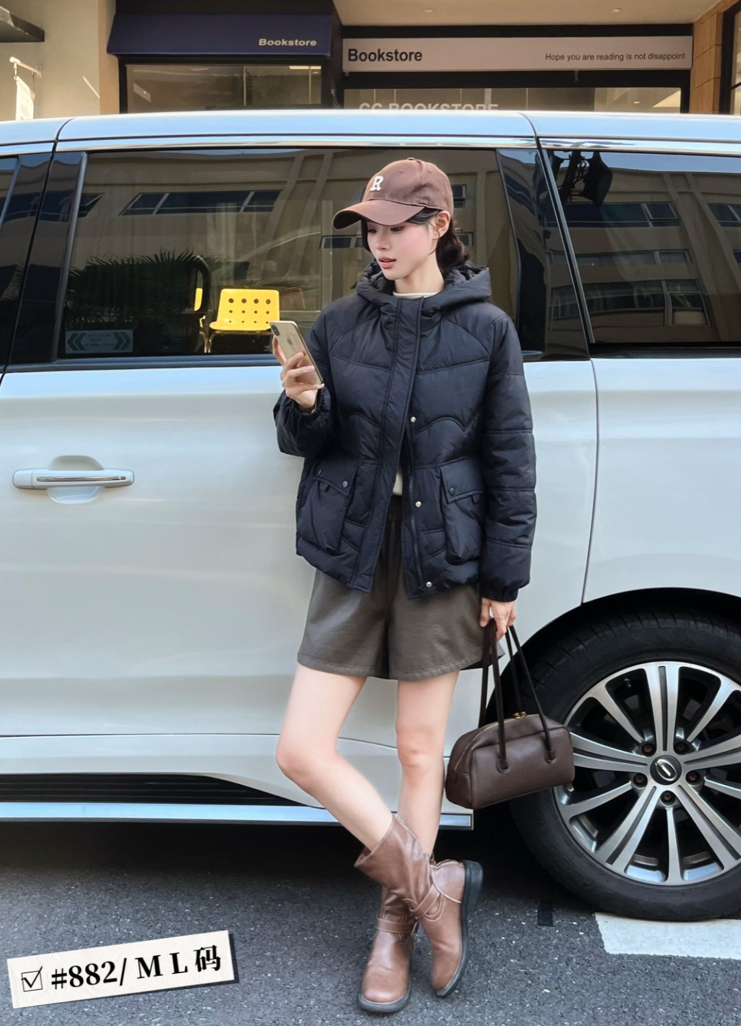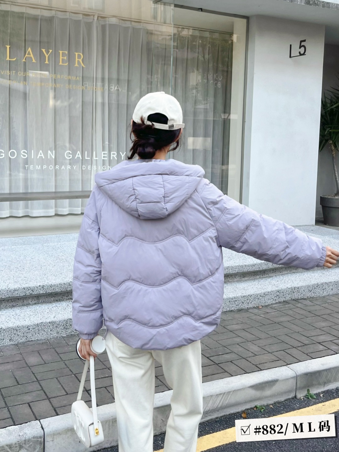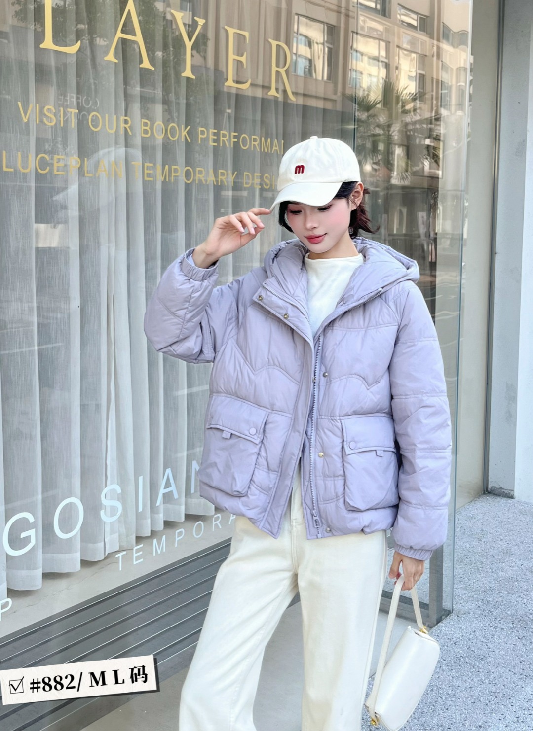 882# 新款休闲羽绒棉连帽外套 连帽防风的短款的版型,下半身随便搭配下装就贼显腿长,满足时髦与温暖兼备的宝藏单品