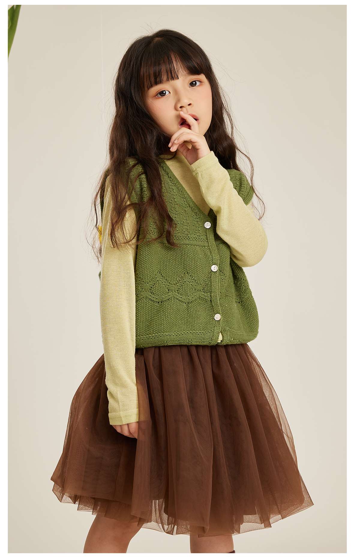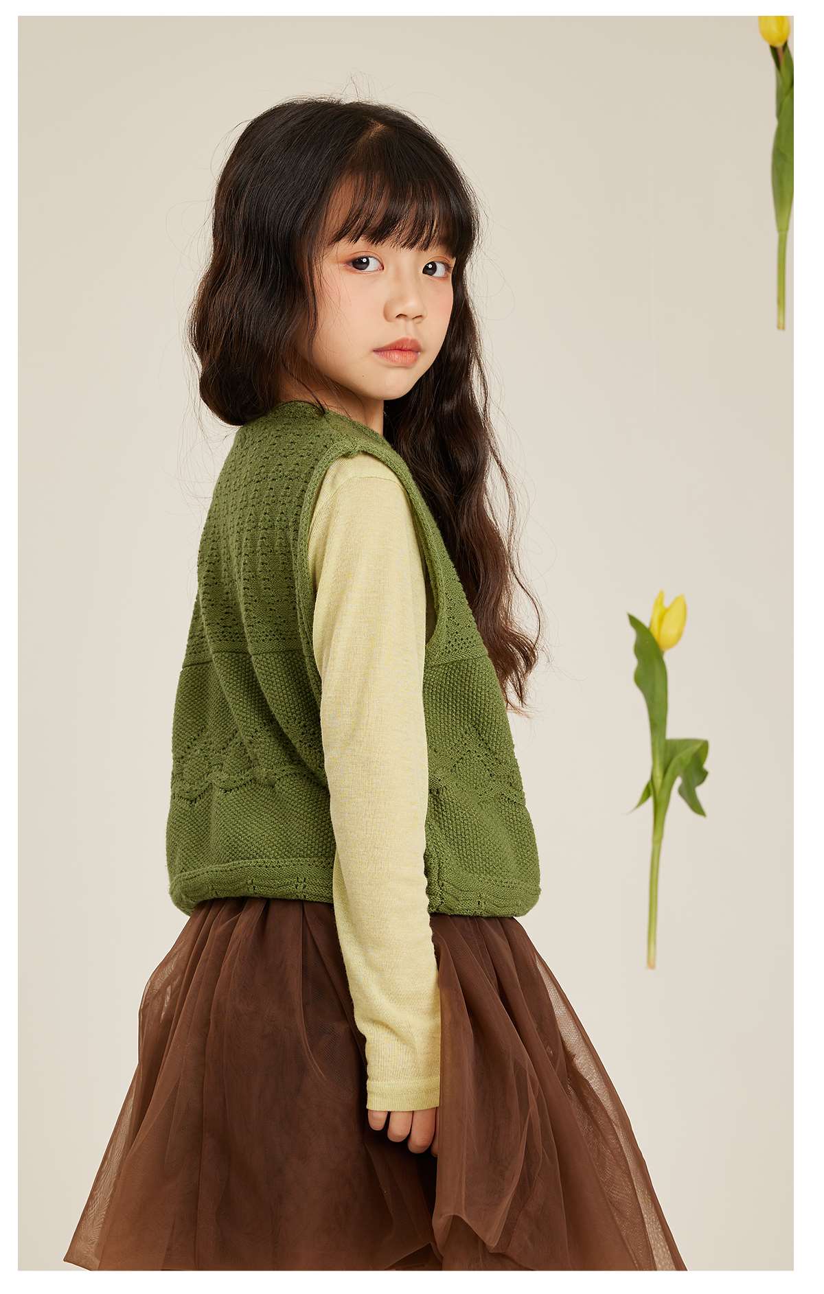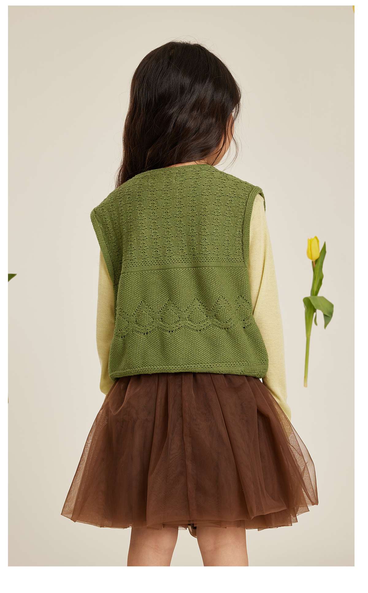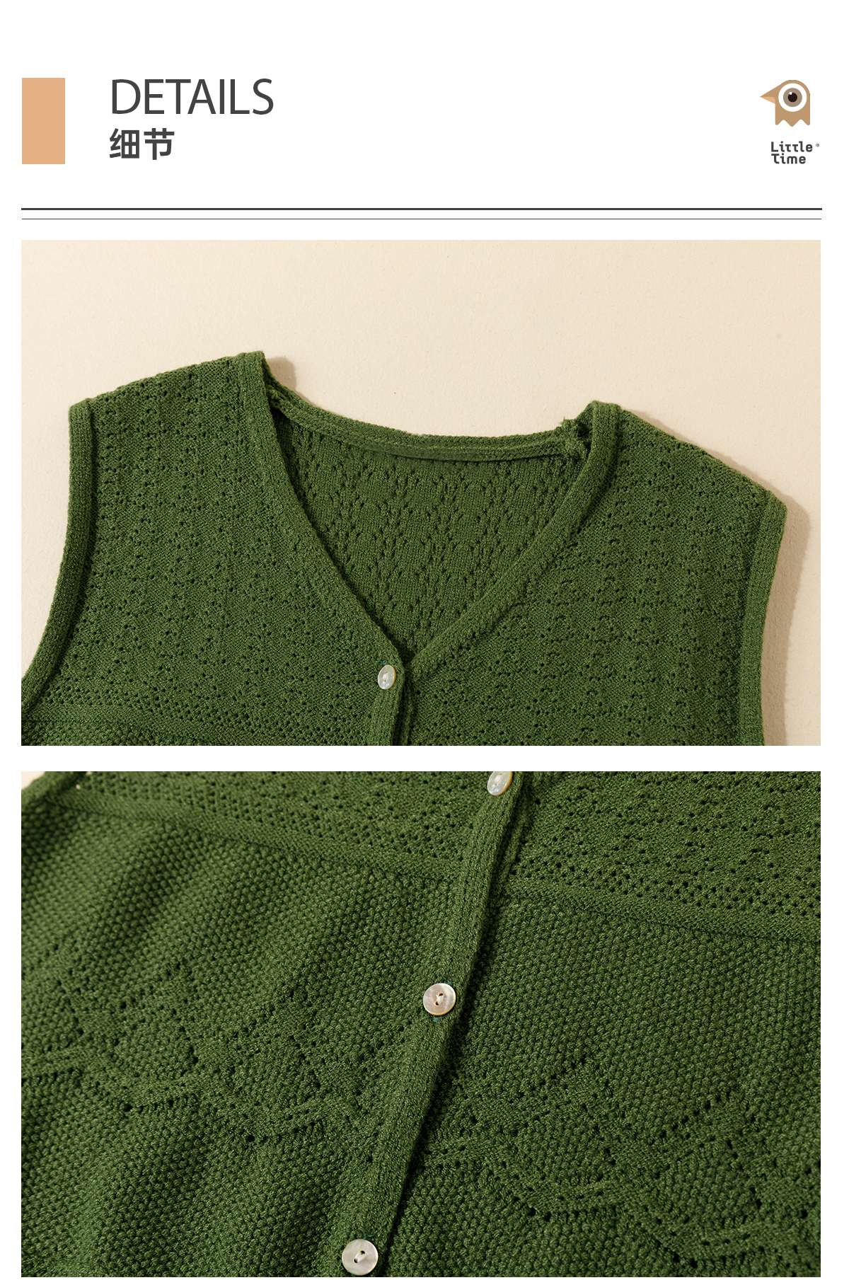 littletime女童马甲小背心春秋季2023新款韩版儿童无袖毛衣小开衫