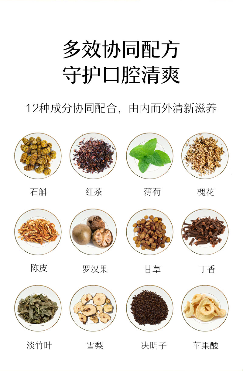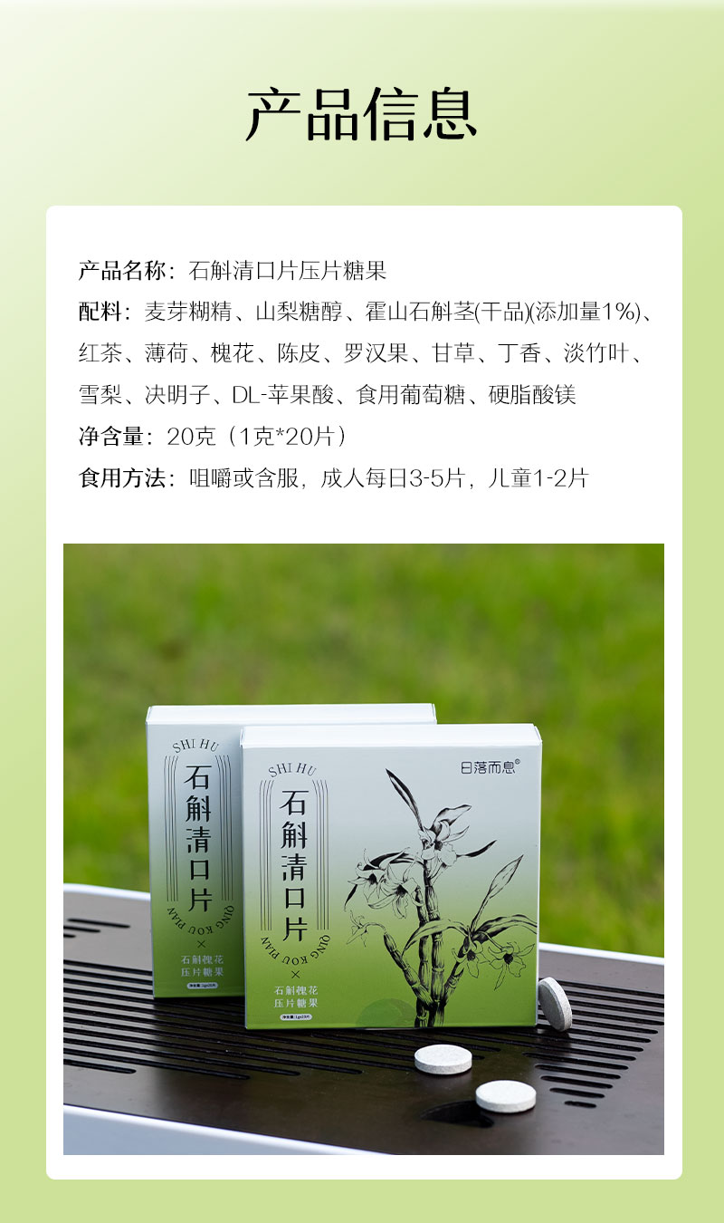 【清新口气】石斛清口片 清新口气调理肠胃 11味草本配方 0蔗糖0防腐剂 石斛槐花压片糖果 口香糖口臭口气片20粒/盒