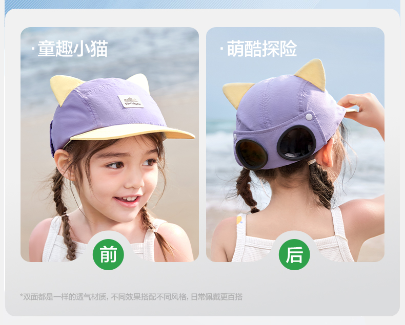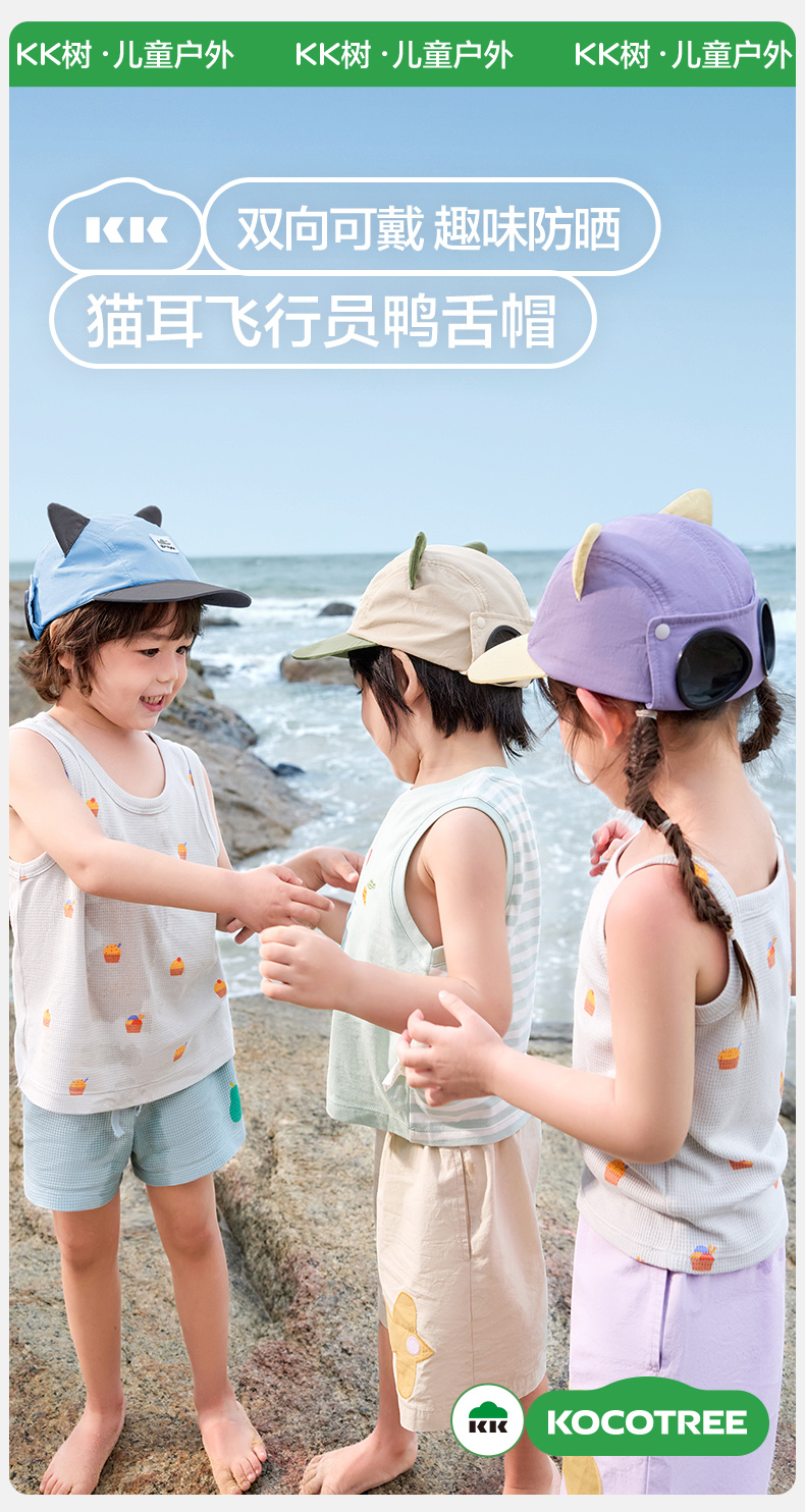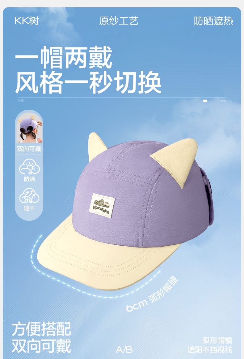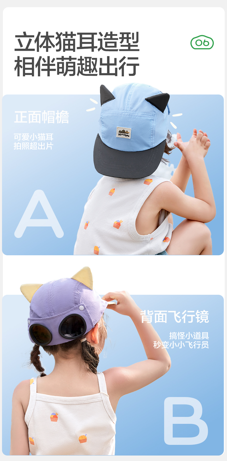 KK树宝宝鸭舌帽猫耳飞行员儿童遮阳帽户外男童女孩双向戴棒球帽猫耳飞行员鸭舌帽