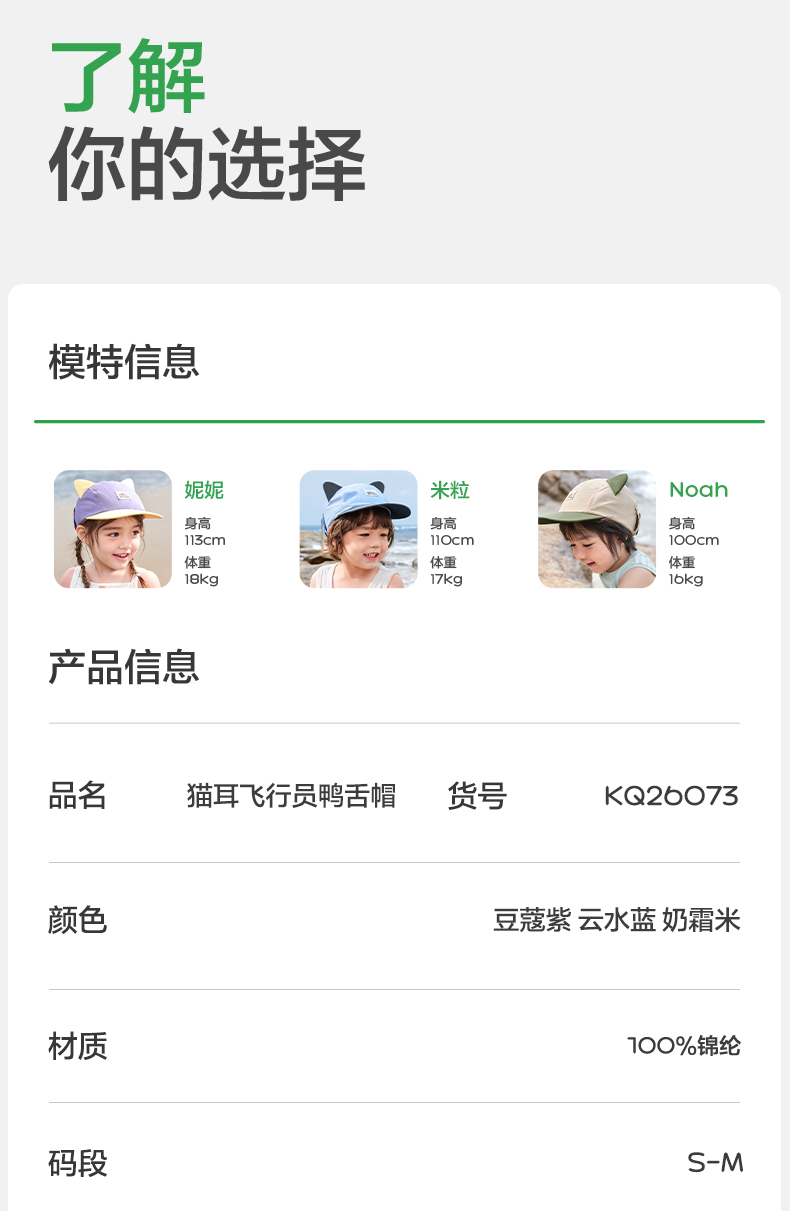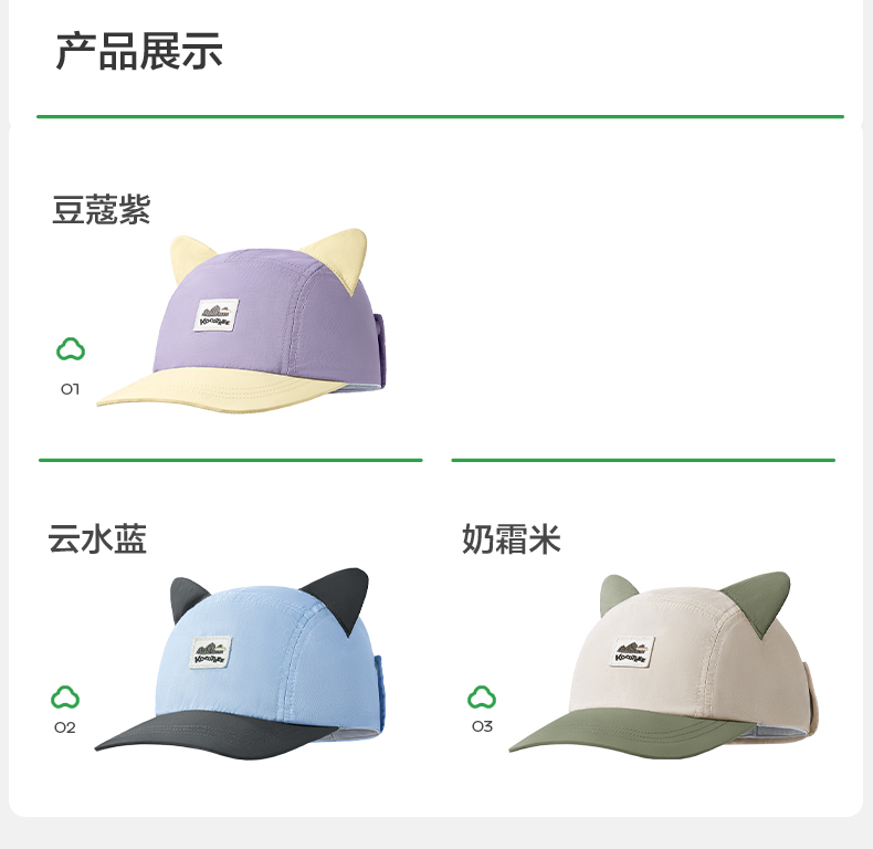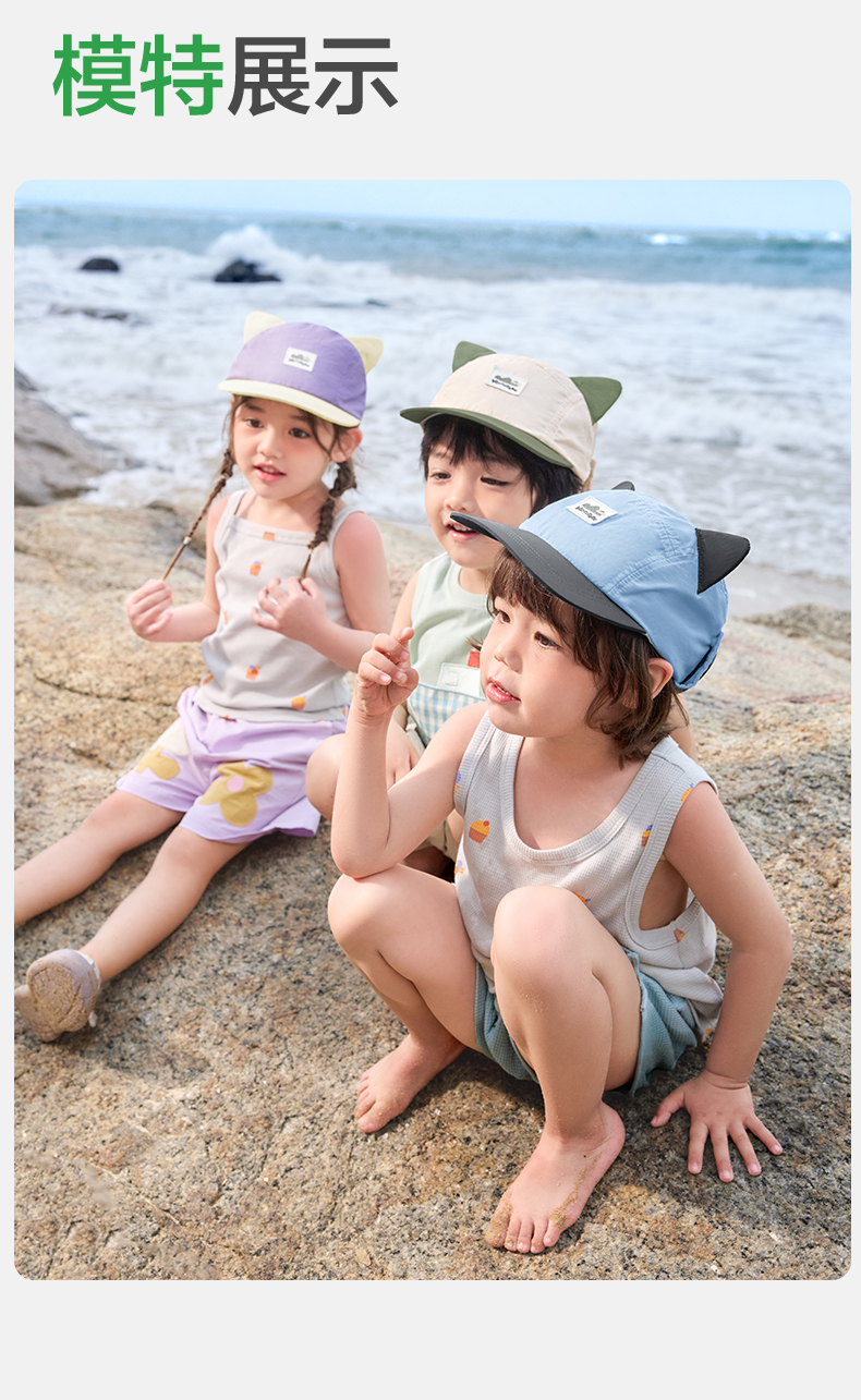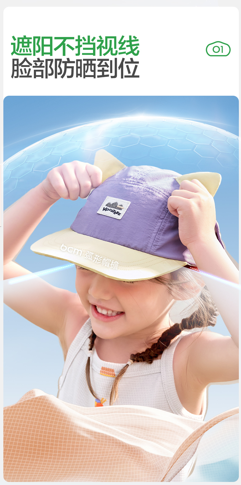 KK树宝宝鸭舌帽猫耳飞行员儿童遮阳帽户外男童女孩双向戴棒球帽猫耳飞行员鸭舌帽