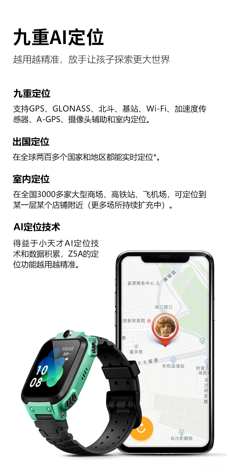 小天才儿童电话手表Z5A防水GPS定位智能手表 学生儿童移动联通电信4G视频拍照手表手机男女孩粉