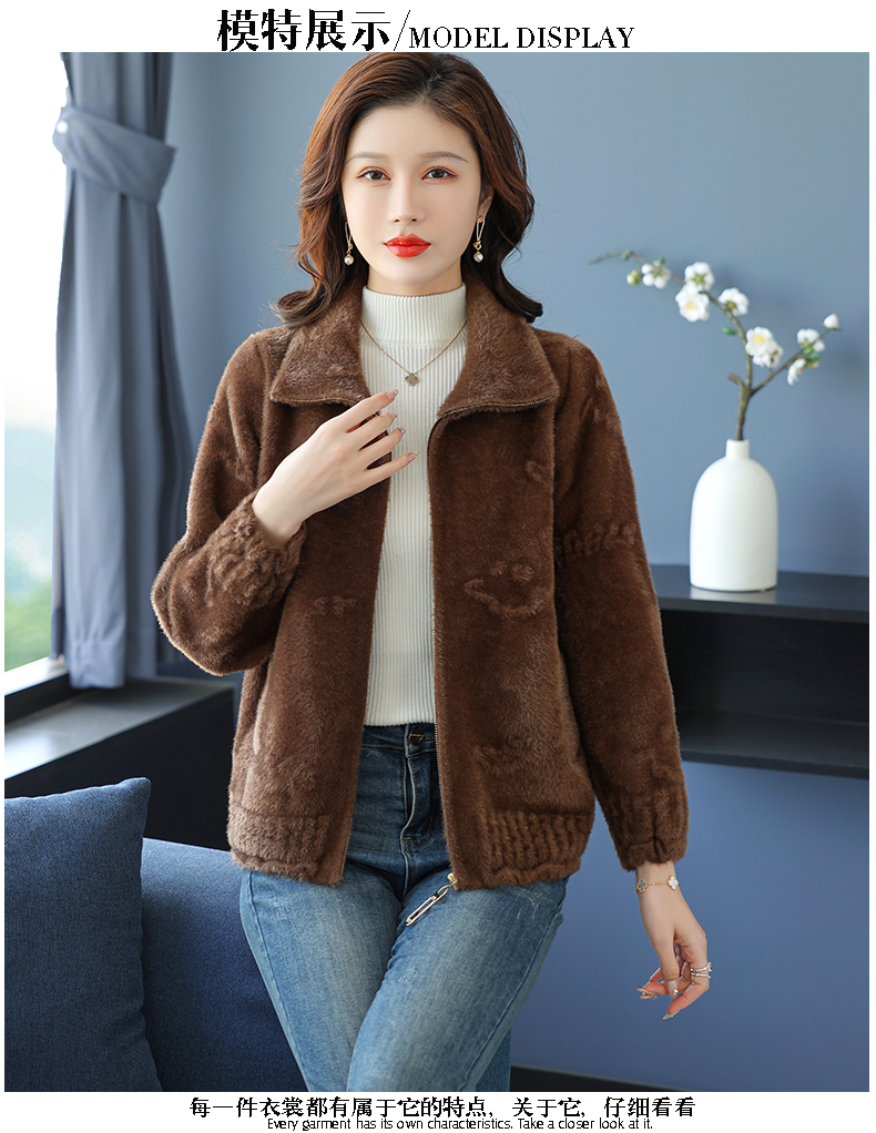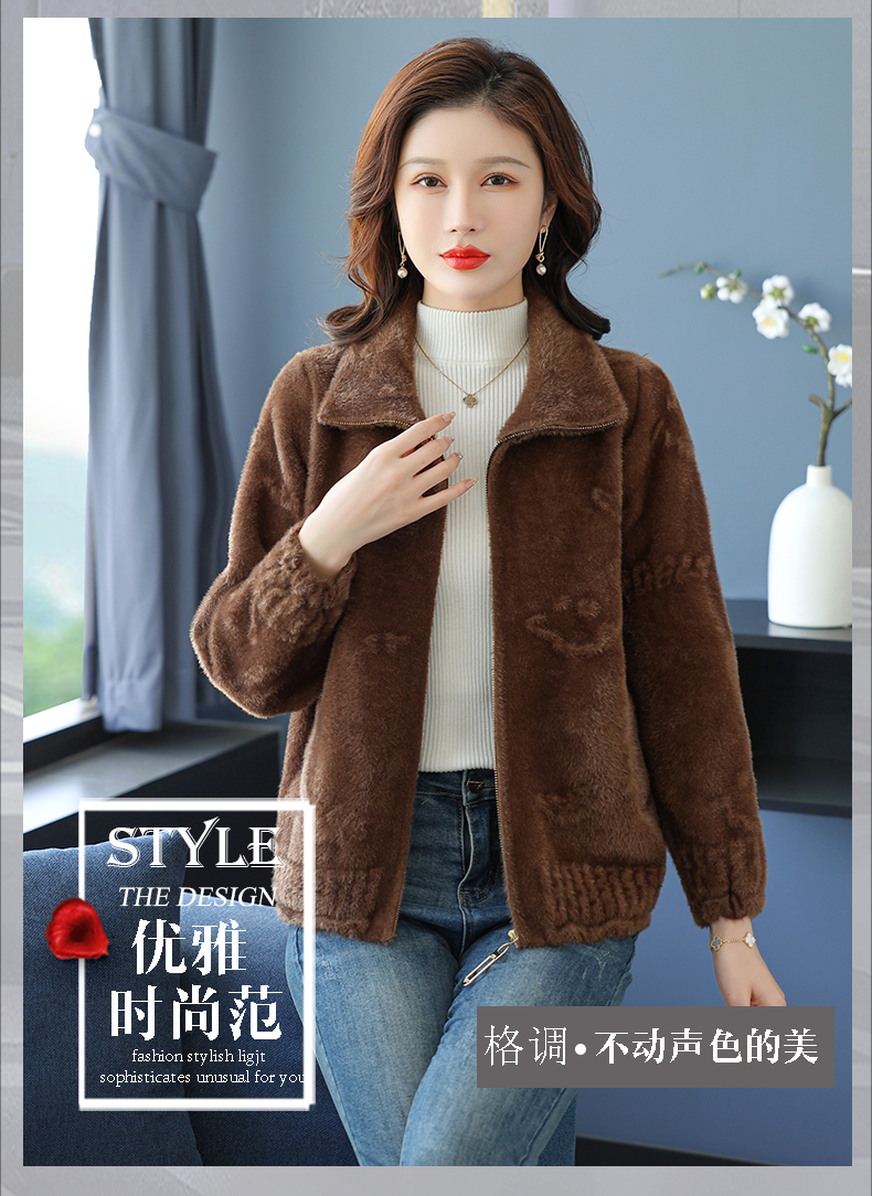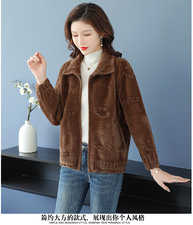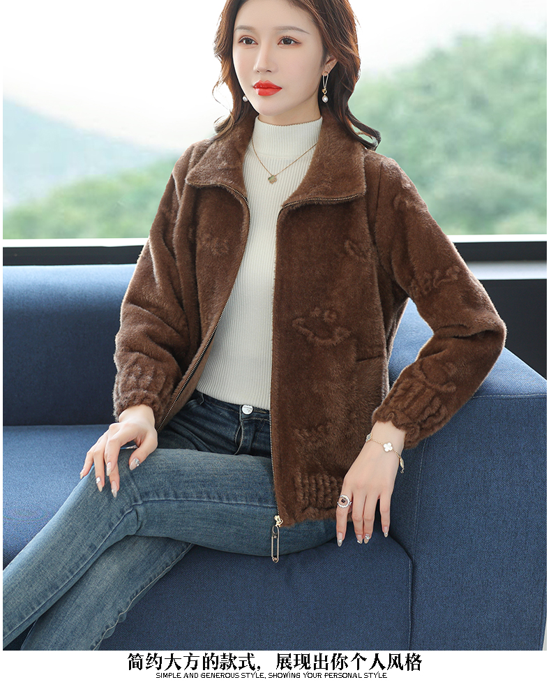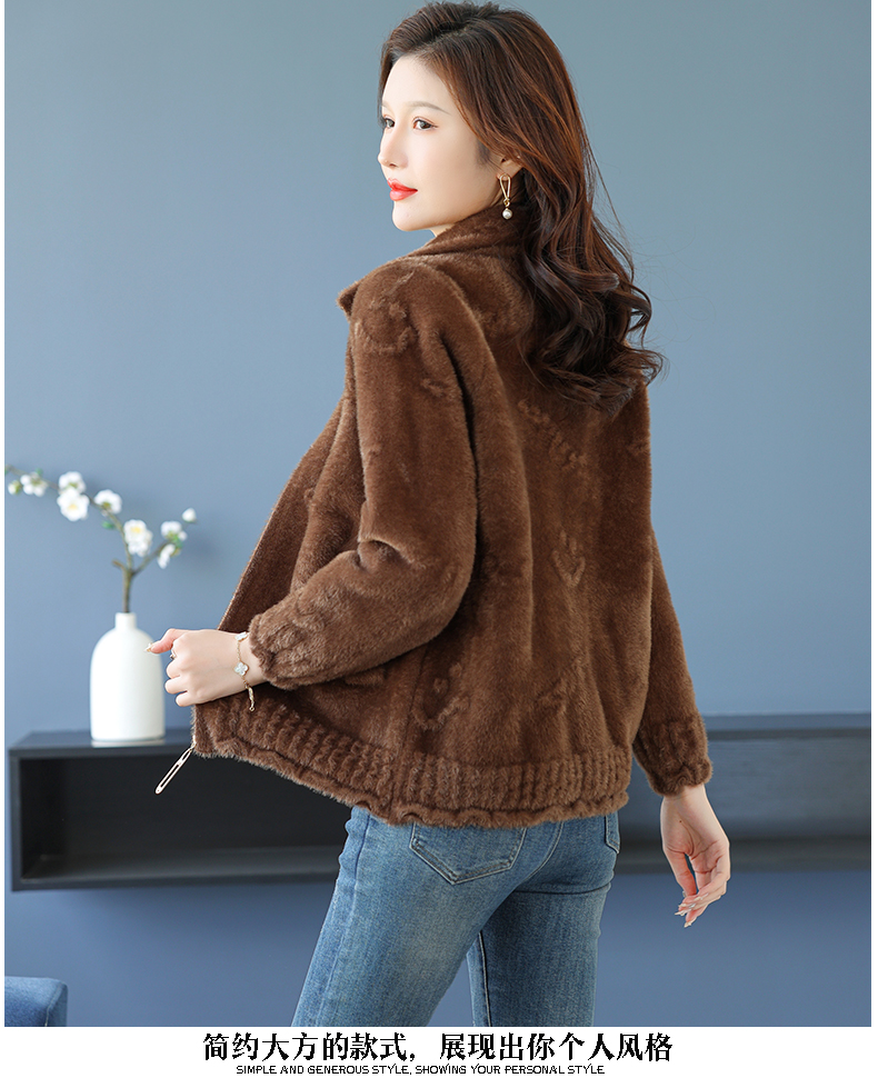 仿水貂绒小开衫外搭字母加厚洋气拉链外套CC-7286