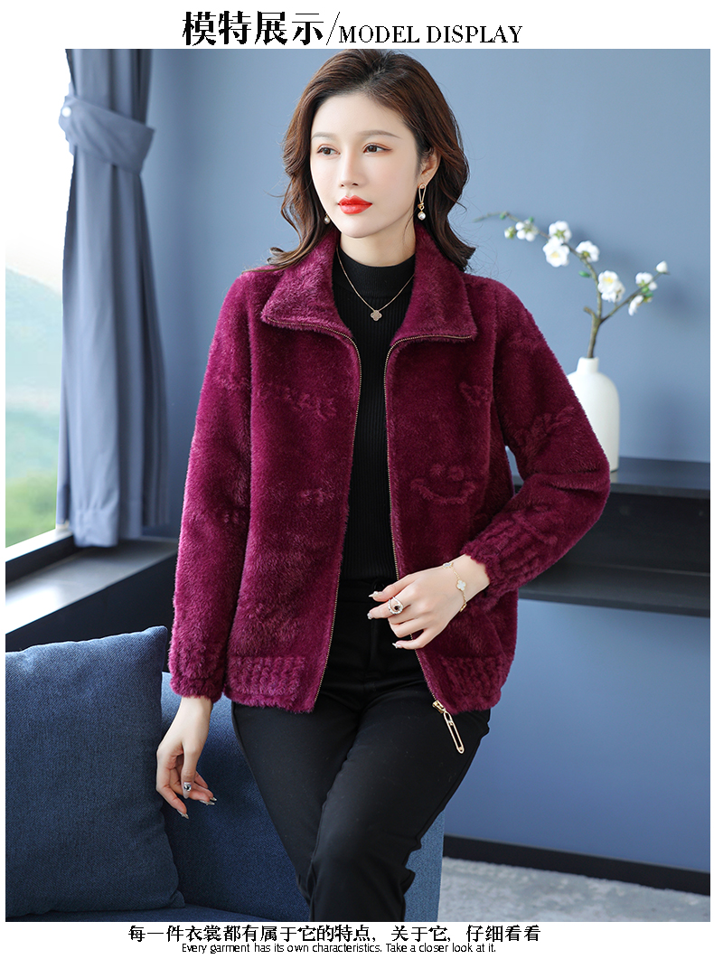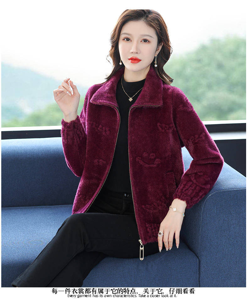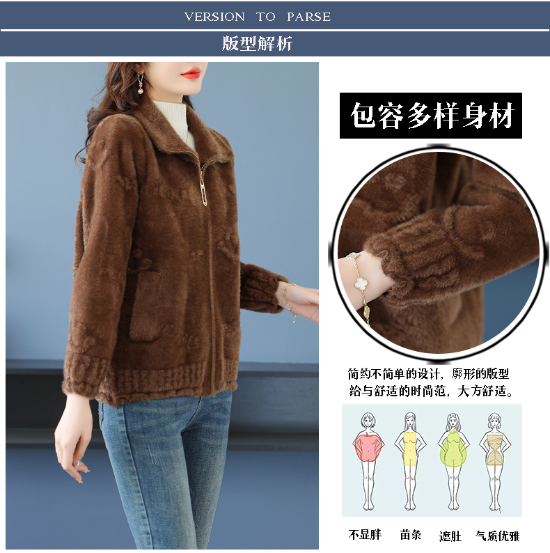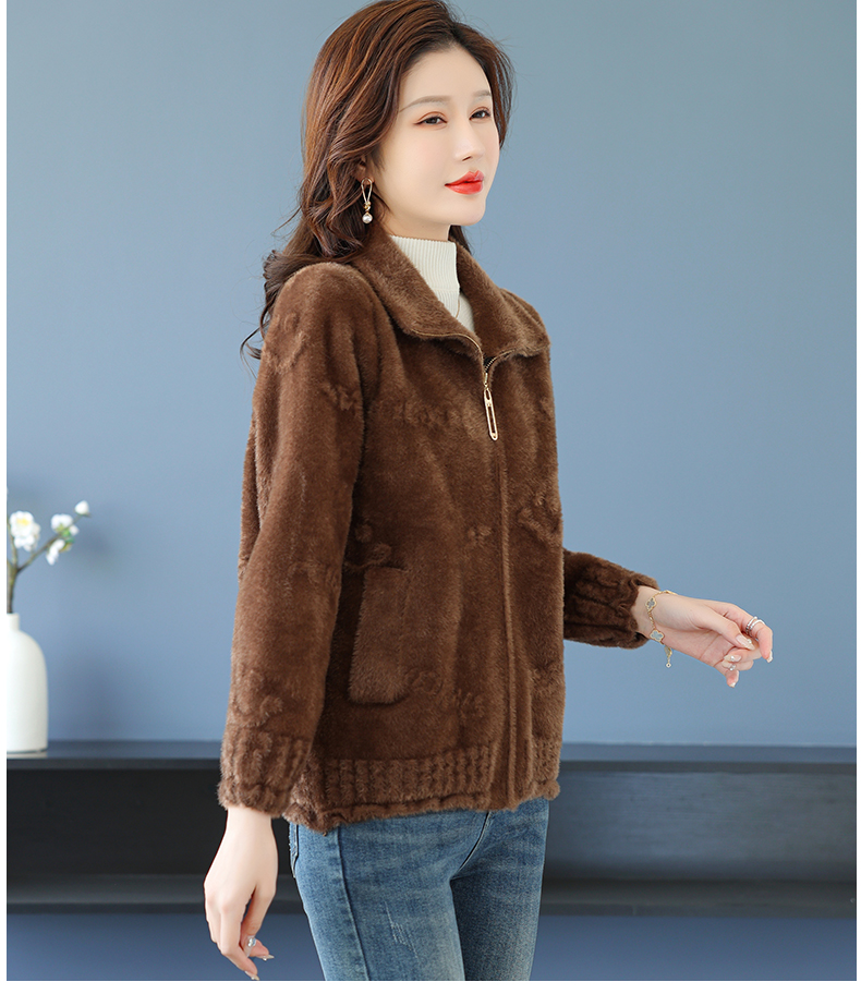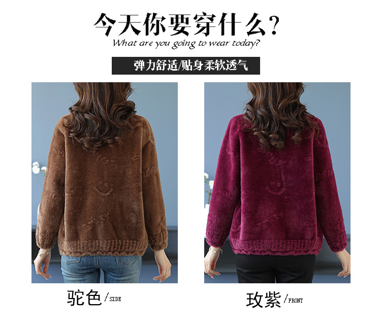 仿水貂绒小开衫外搭字母加厚洋气拉链外套CC-7286