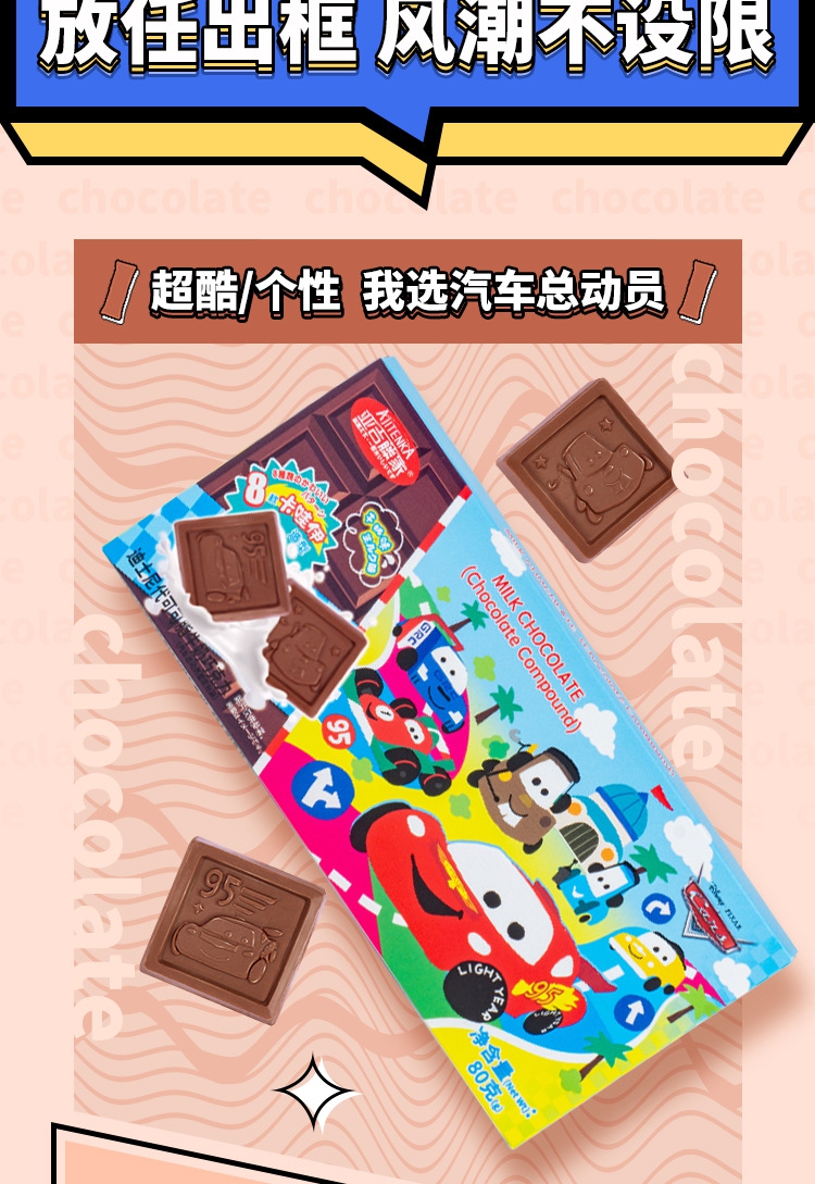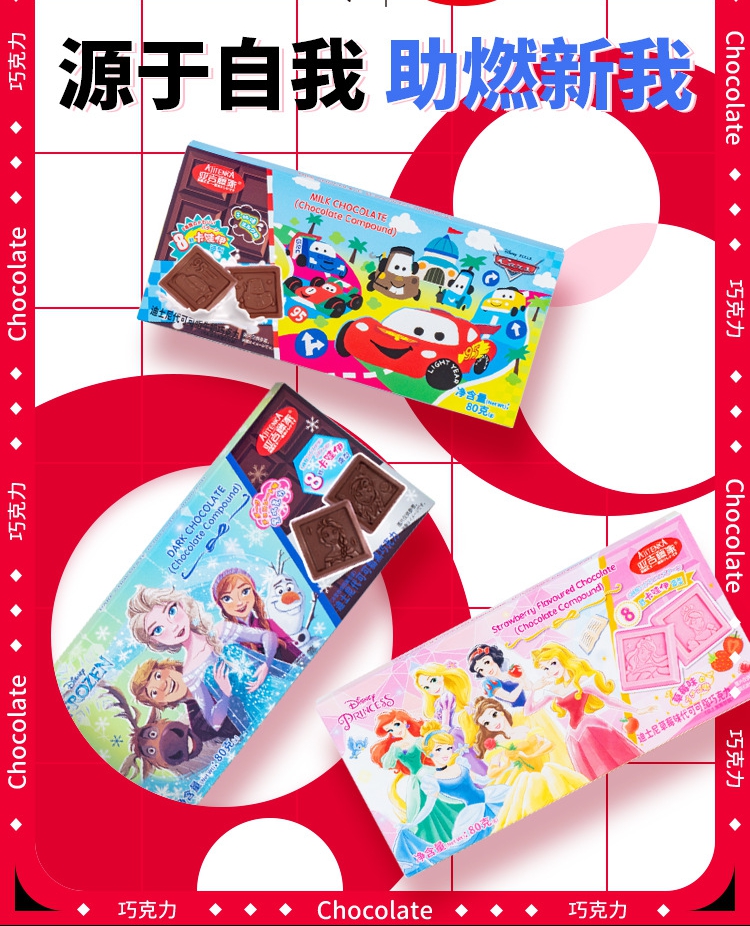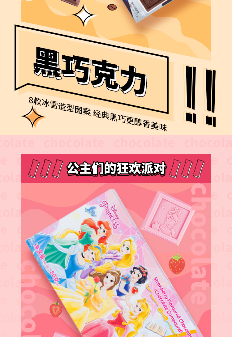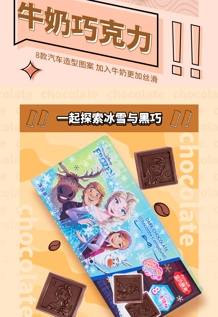 迪士尼代可可脂黑巧克力(冰雪奇缘图案包装)/草莓味(公主图案包装)/牛奶巧克力(汽车总动员图案包装)/059707/044595/044596