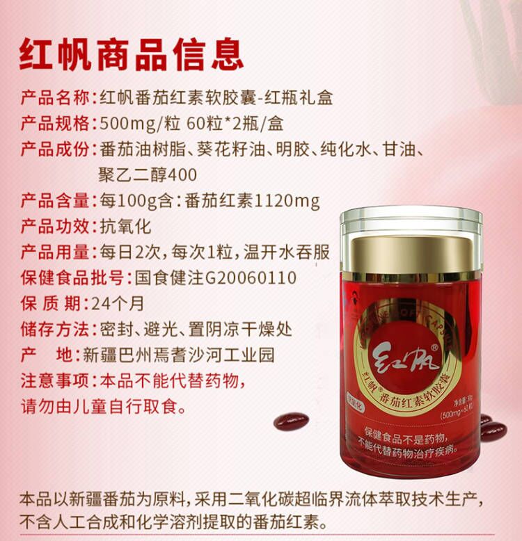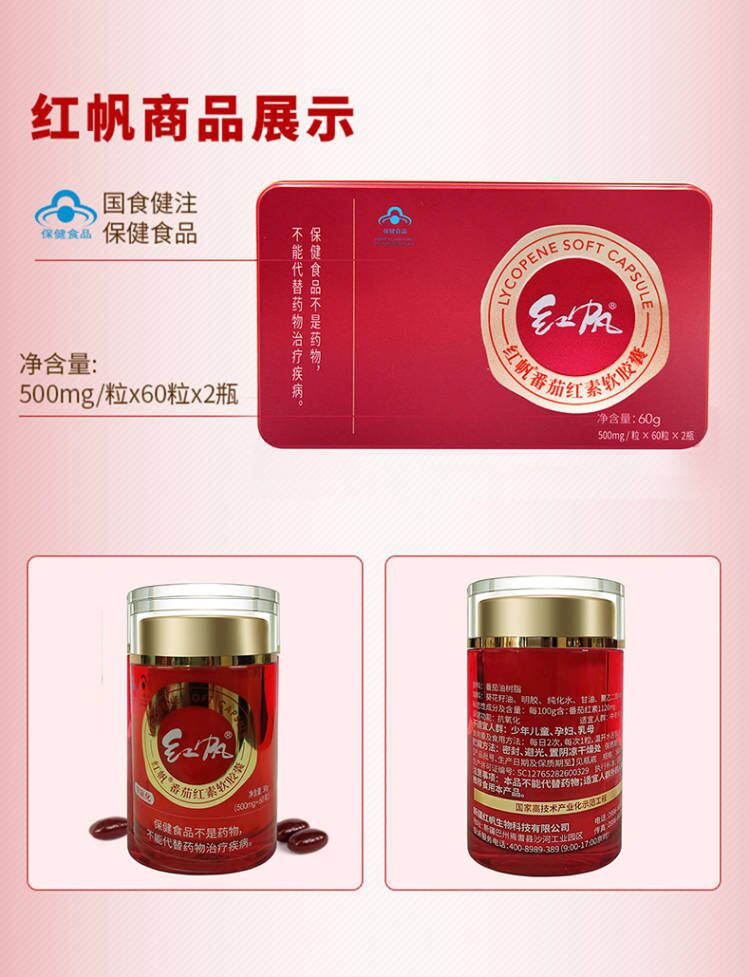 红帆R番茄红素软胶囊 500mg/粒*60粒*2瓶