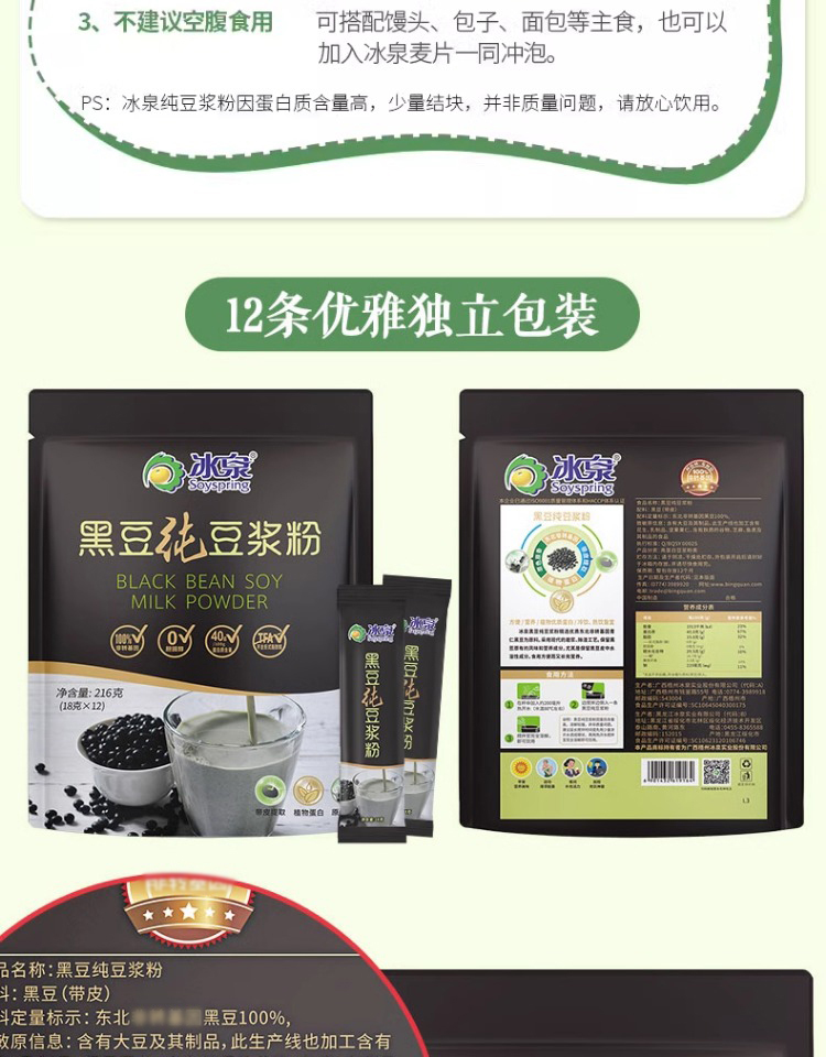 冰泉 黄豆/黑豆 纯豆浆粉 216g/袋