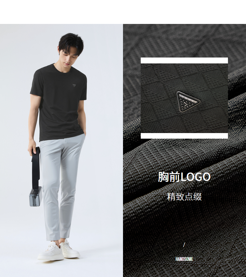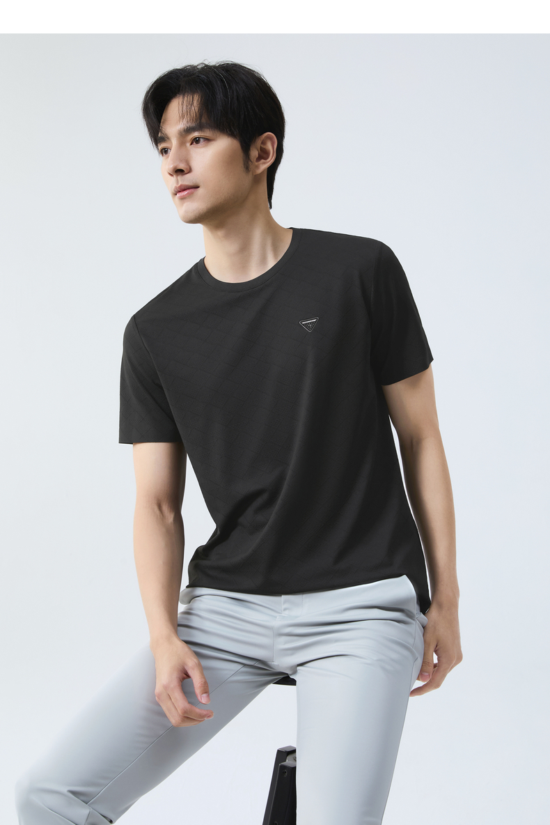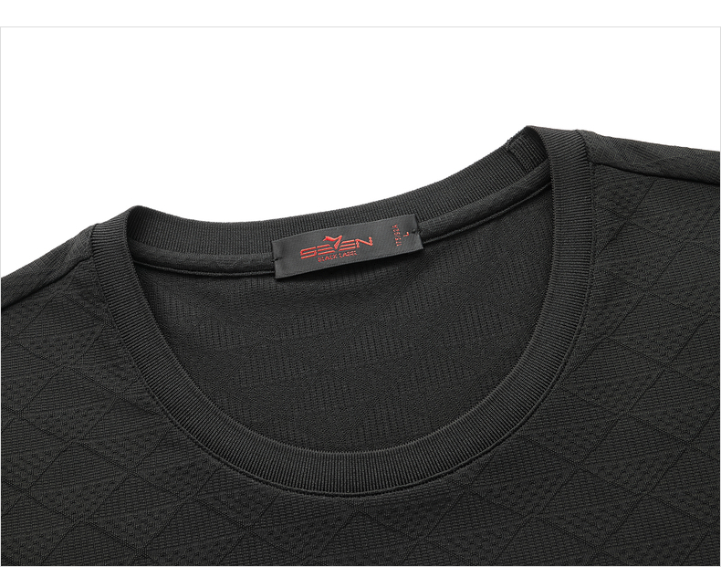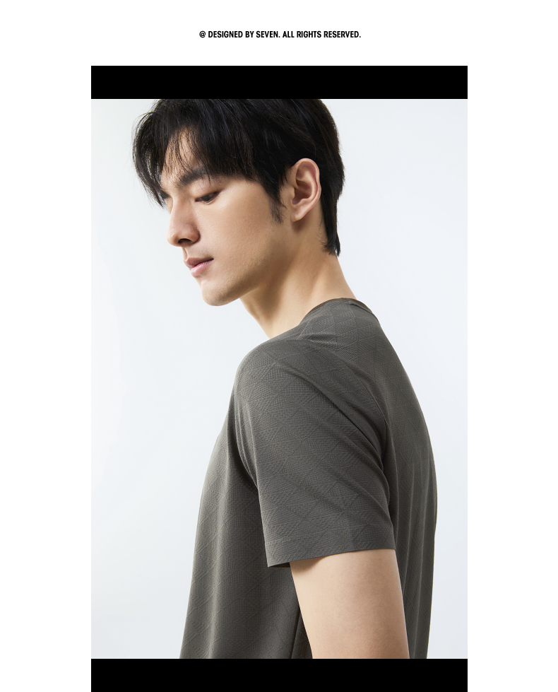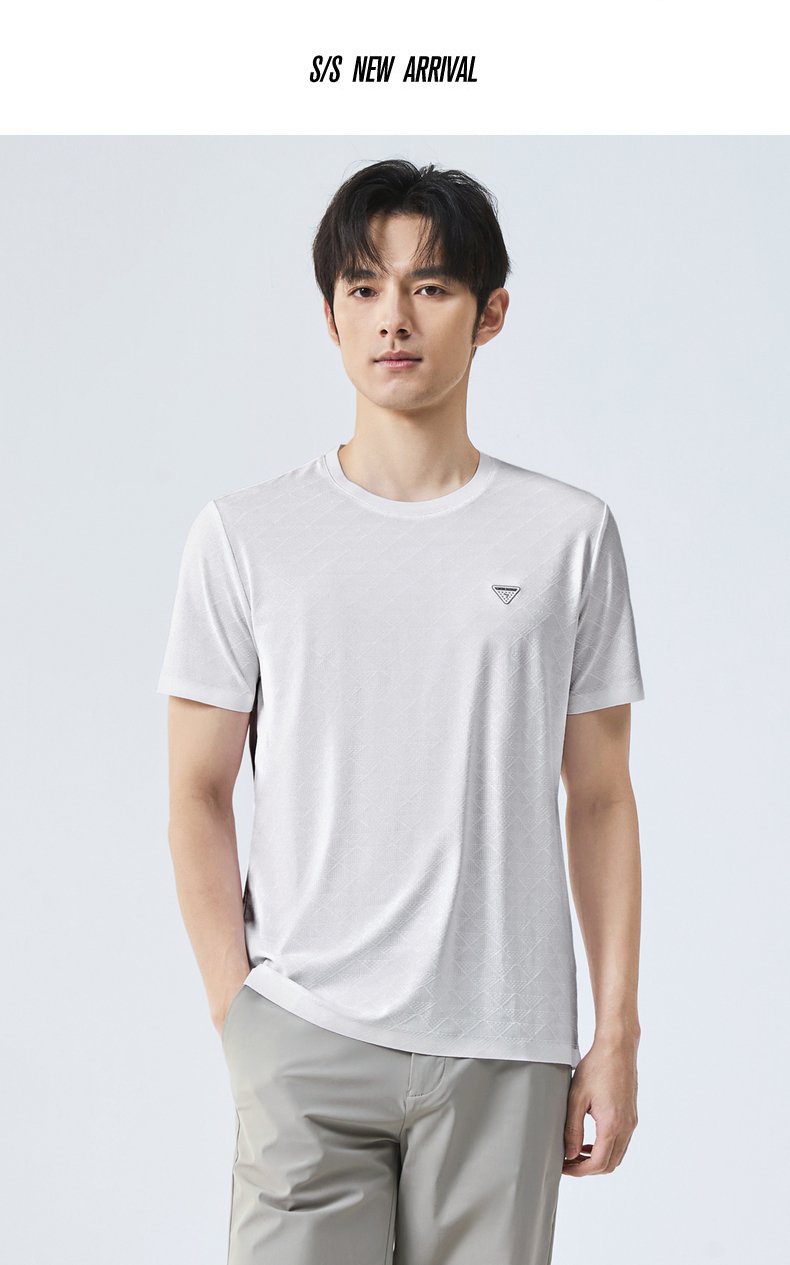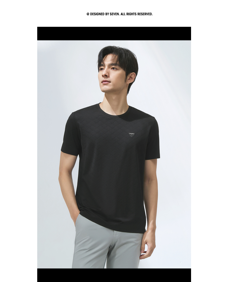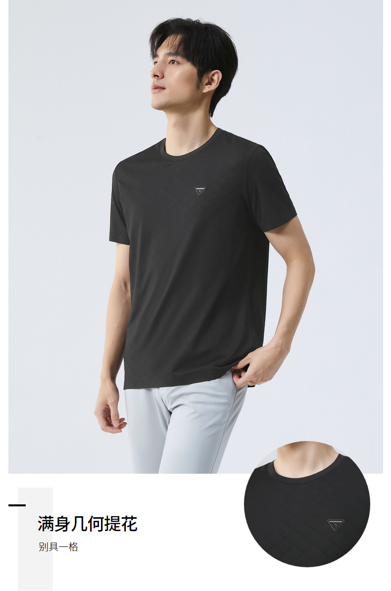 【锦氨无缝/满身提花】柒牌短袖T恤男士夏季薄款几何提花圆领上衣128T70950