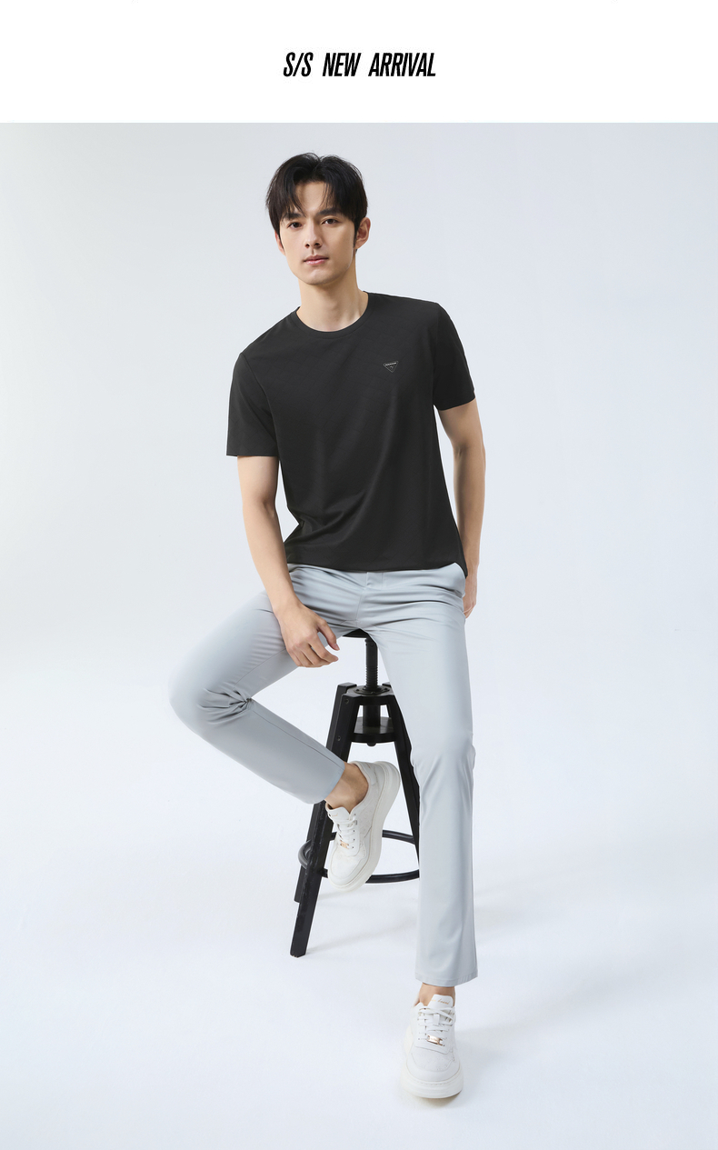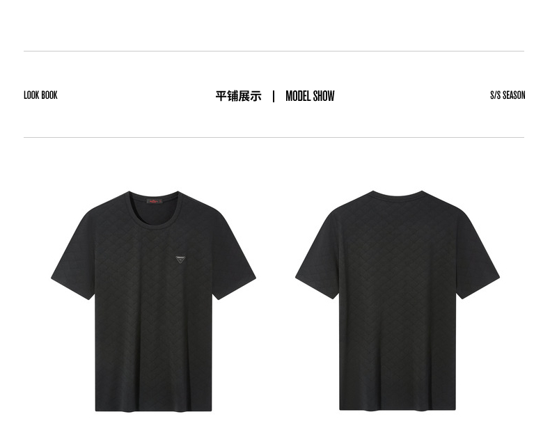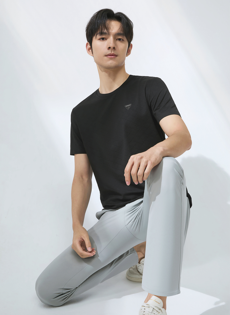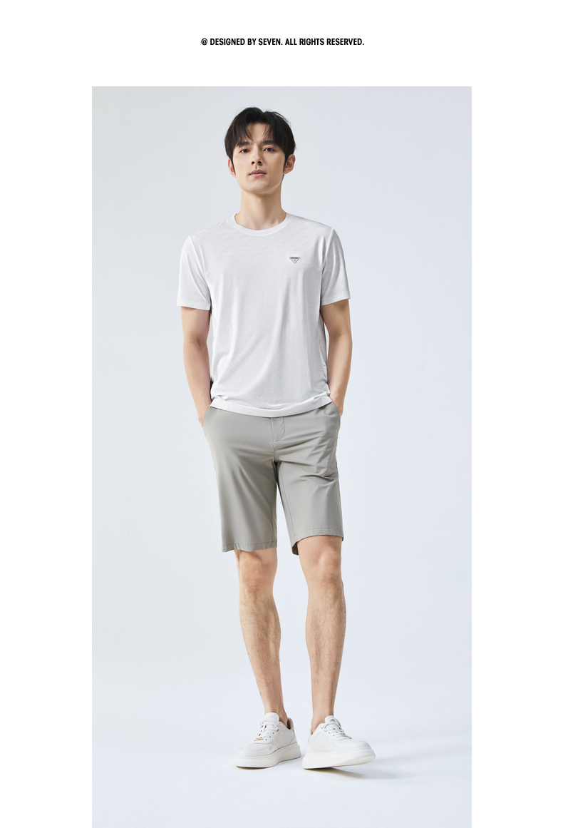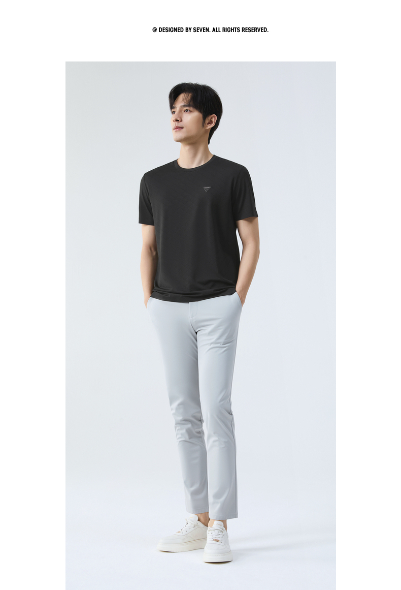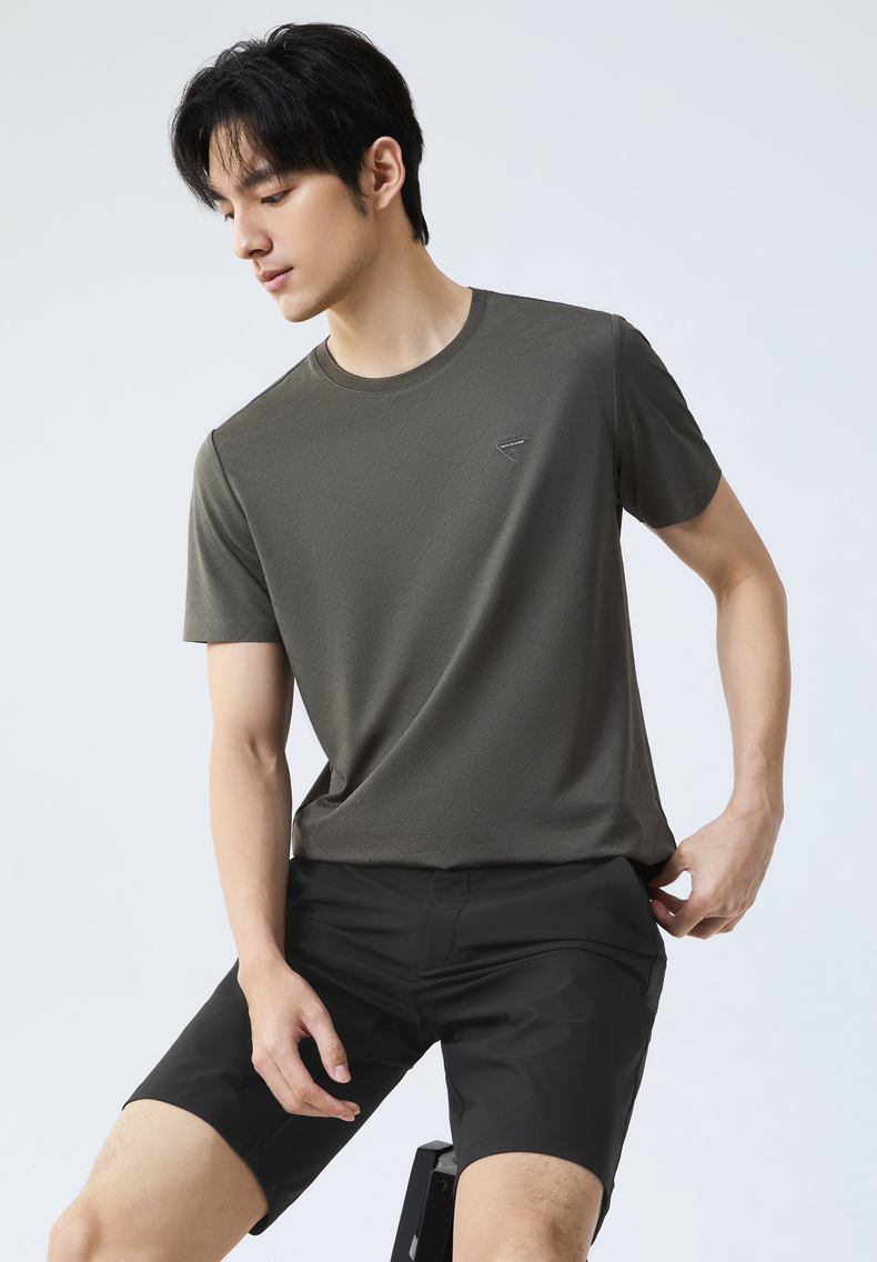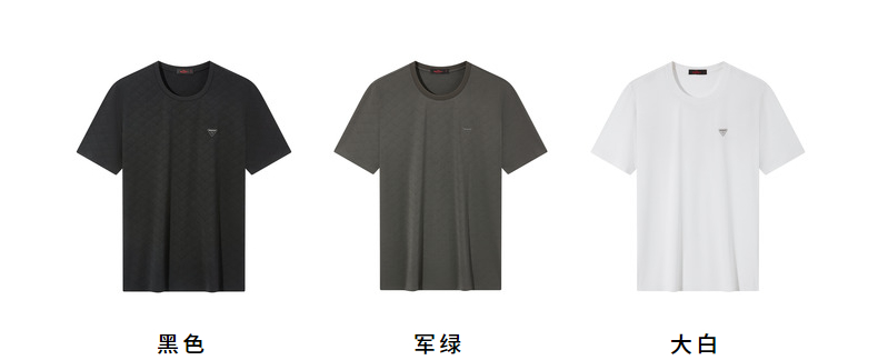 【锦氨无缝/满身提花】柒牌短袖T恤男士夏季薄款几何提花圆领上衣128T70950