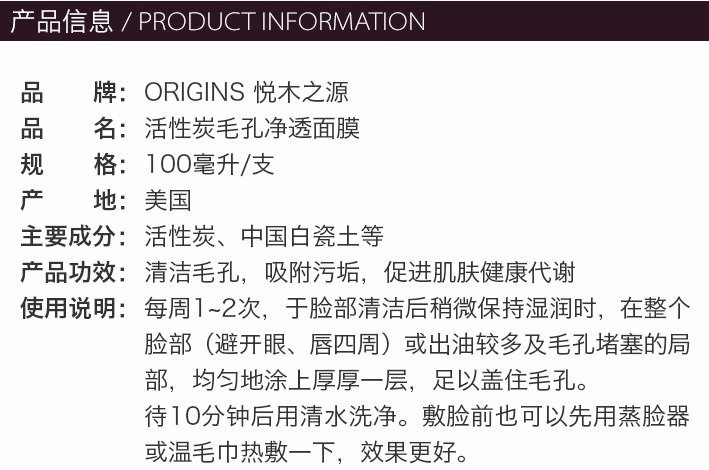 【现货】ORIGINS/悦木之源 活性炭毛孔净透面膜 泥娃娃 100ML