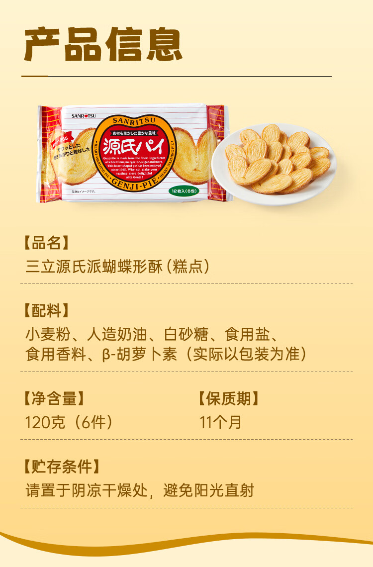 三立源氏蝴蝶酥饼120g/050944 用心烘烤麦香四溢精巧“蝴蝶形”