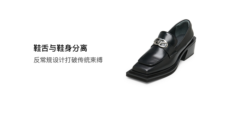 [捡漏价]lost in echo2024秋季新款通勤方根厚底增高黑色皮鞋乐福单鞋女