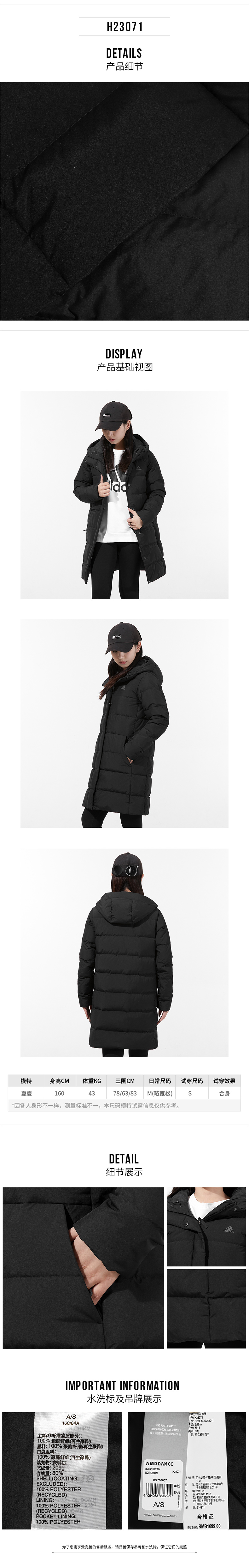 阿迪达斯 (adidas) 官方舰店羽绒服女装 秋冬新款运动服户外夹克防风保暖连帽外套长款过膝羽绒服 H23071