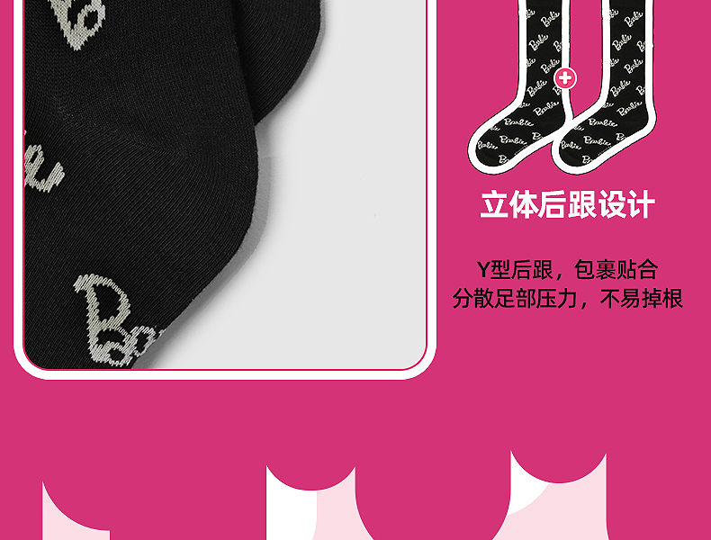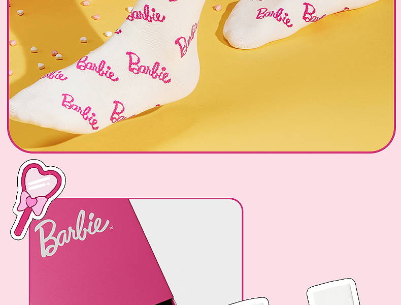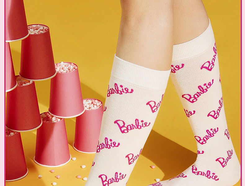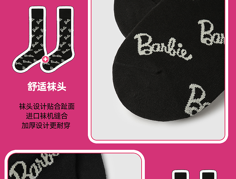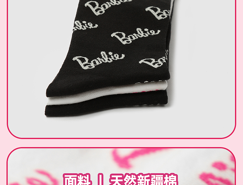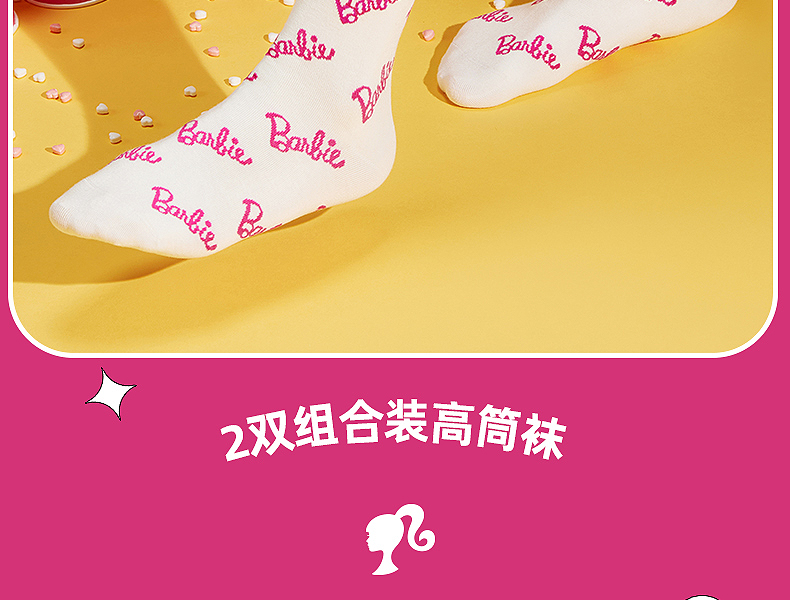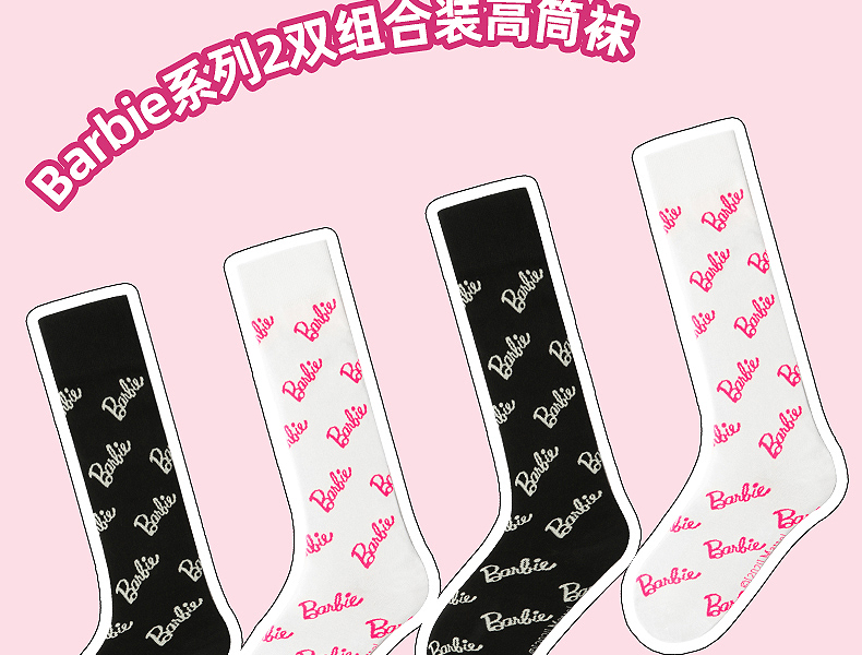 好奇蜜斯【2双装】BARBIE芭比联名时尚舒适字母中高筒袜潮长袜子地板袜 伊瓦