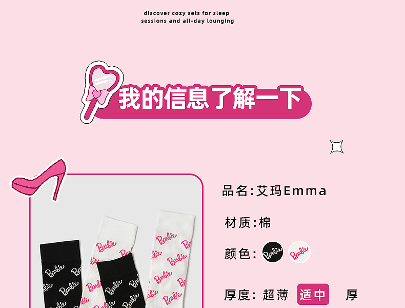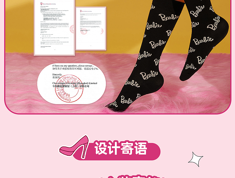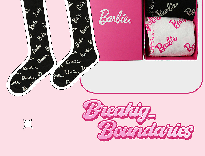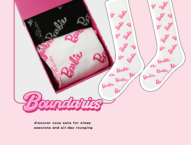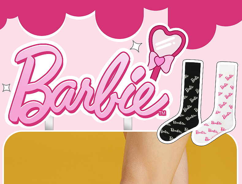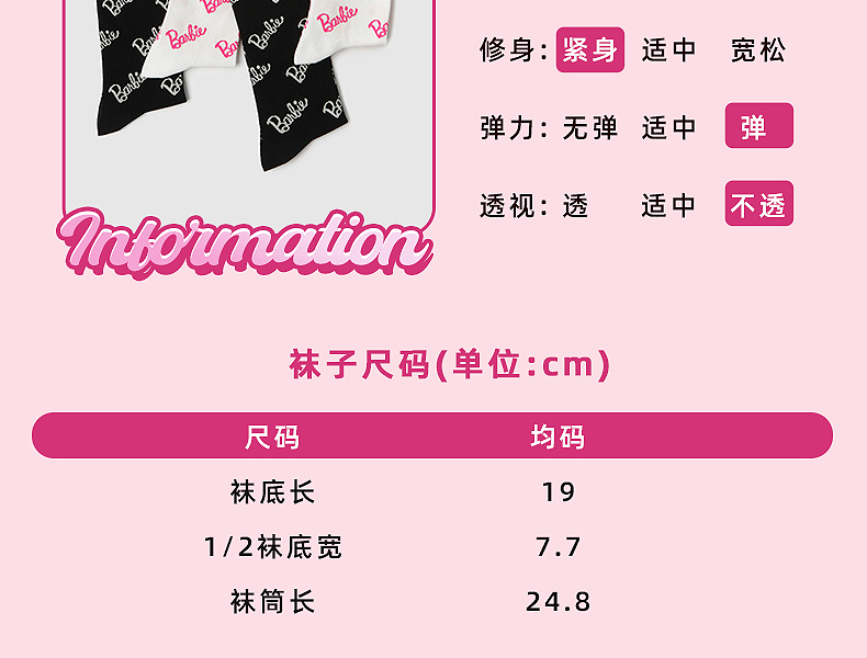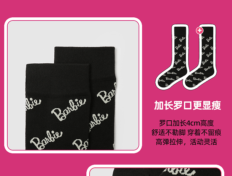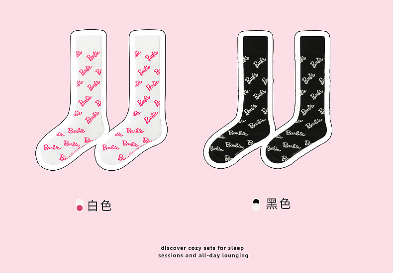 好奇蜜斯【2双装】BARBIE芭比联名时尚舒适字母中高筒袜潮长袜子地板袜 伊瓦