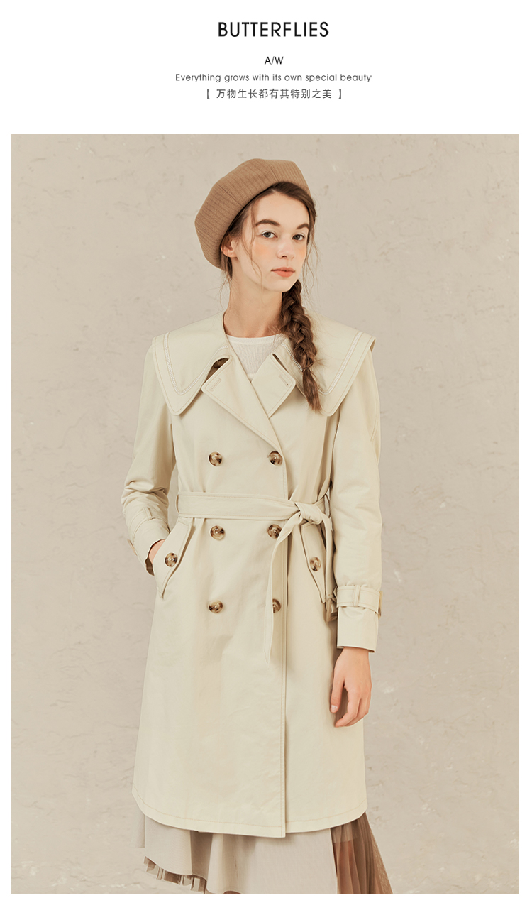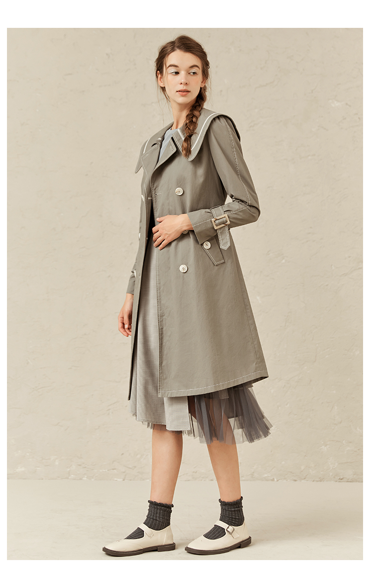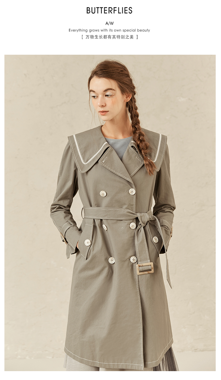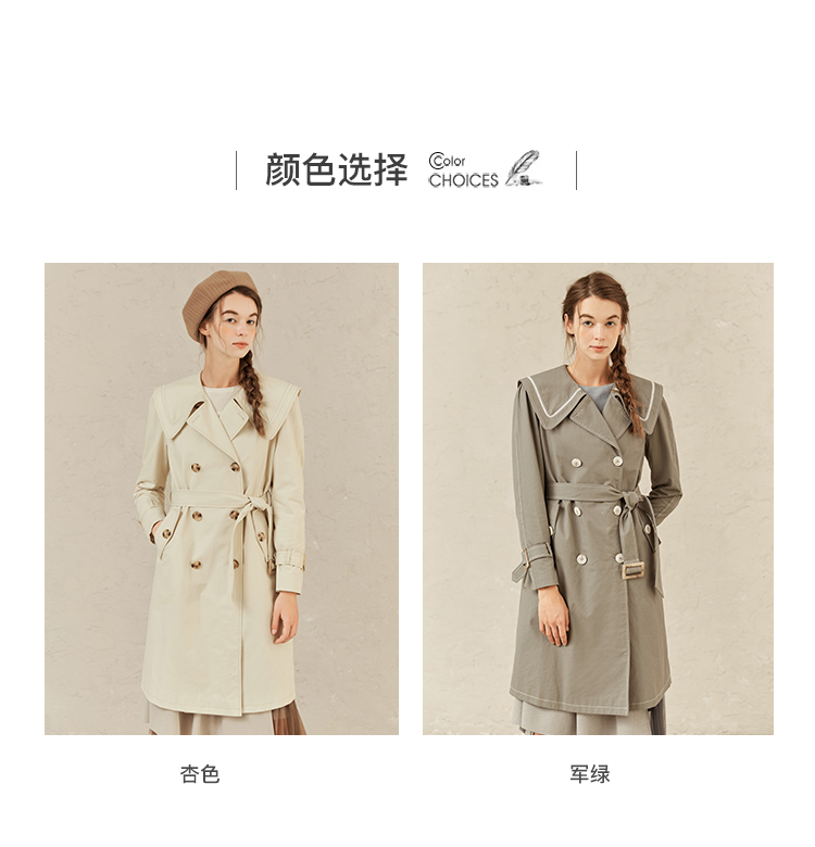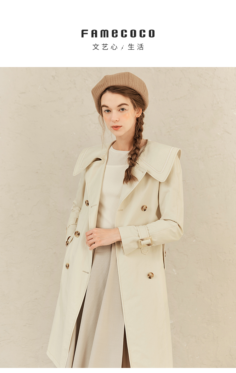 Famecoco范可儿日式时尚风衣女春秋长款外套大学生F221AT003