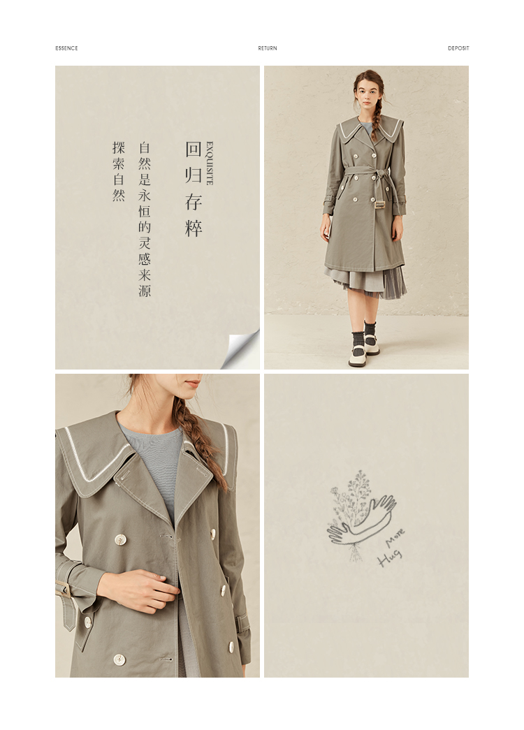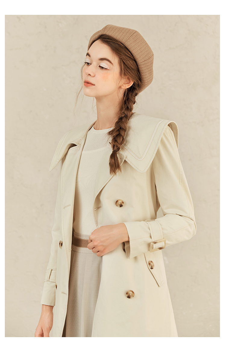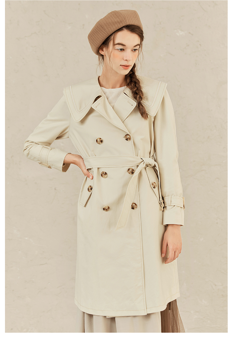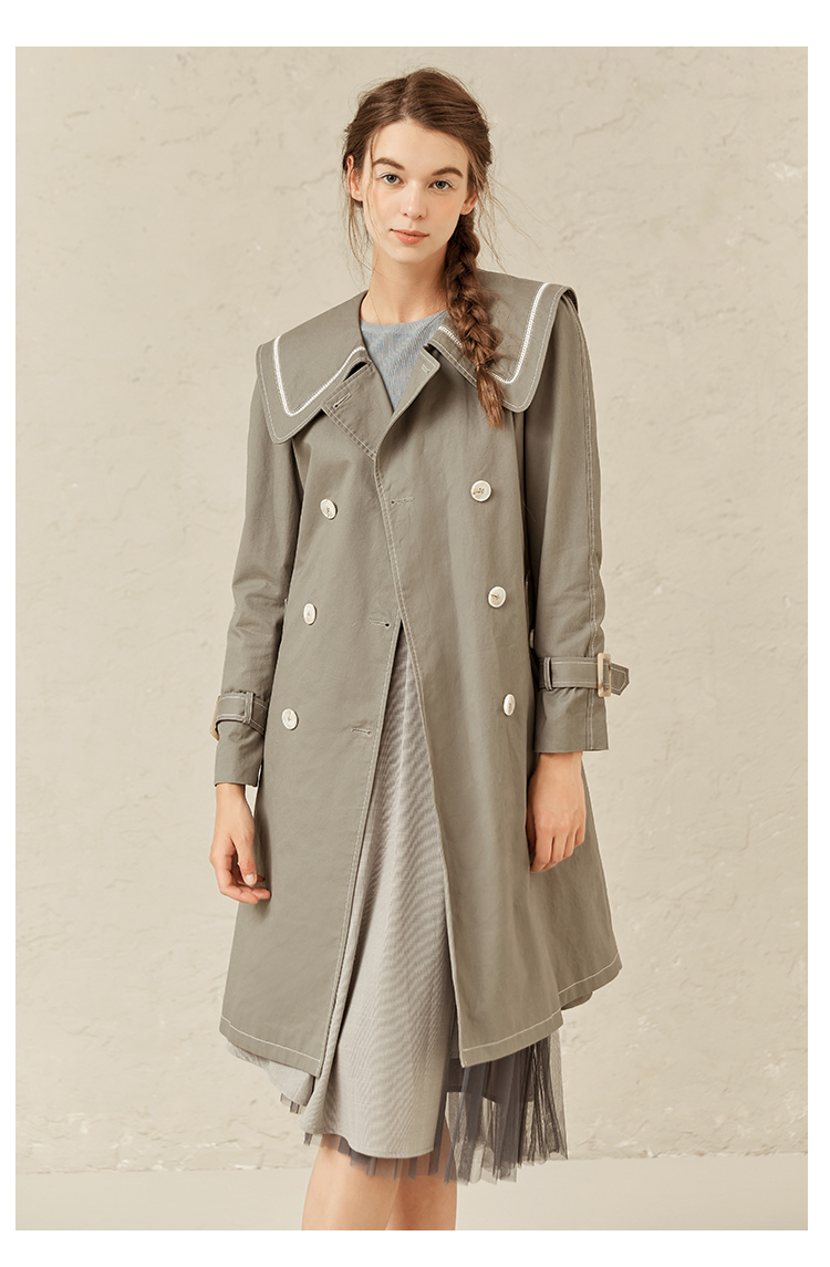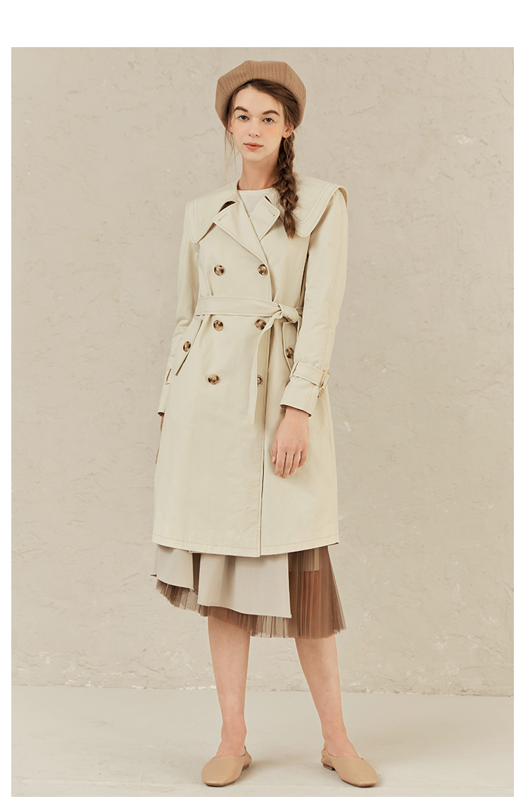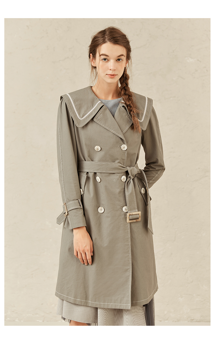 Famecoco范可儿日式时尚风衣女春秋长款外套大学生F221AT003