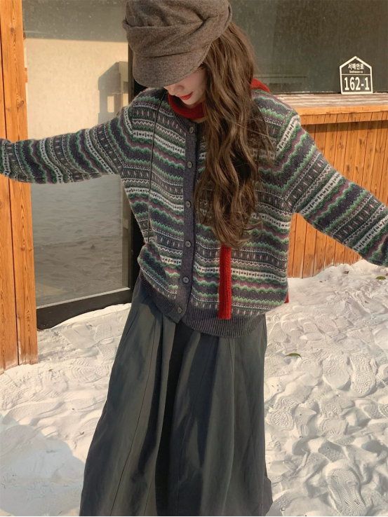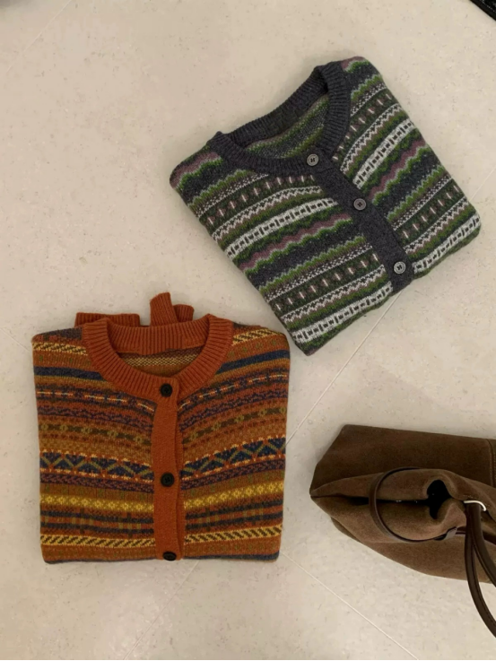🔥【Avann民族风混纺羊毛针织衫】 ✅ 材质加分:14%羊毛 锦纶31.7%☺️ 晴纶23% 聚酯纤维21.3% ✅ 版型友好:🌈圆领不挑脸型,条纹经典不过时