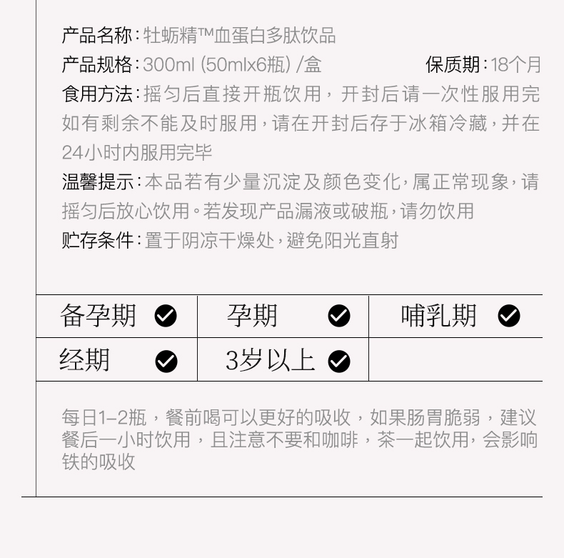 羽心堂 牡蛎精™血蛋白多肽饮品 50ml*6/盒
