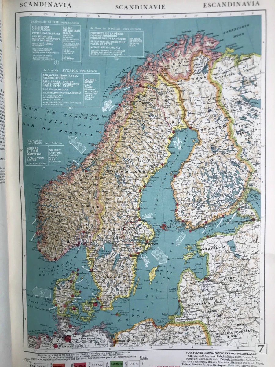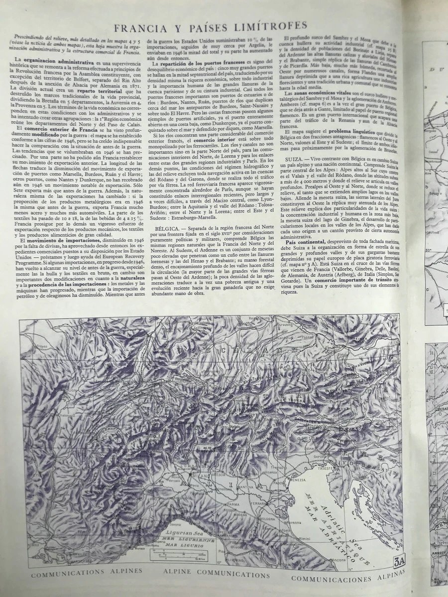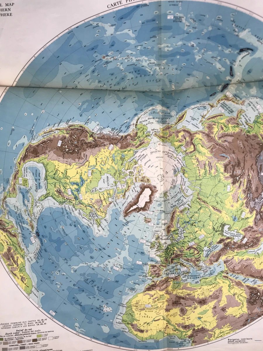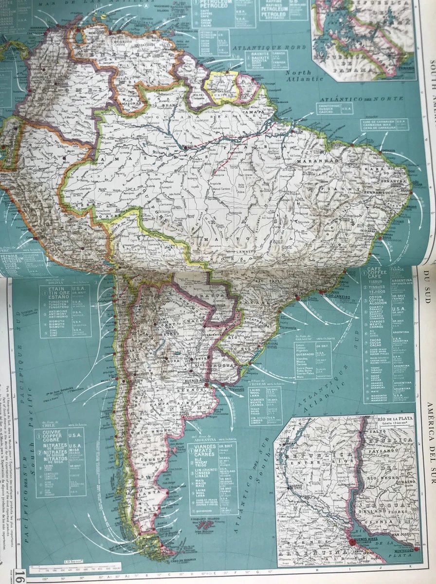 【法语】50*36cm!1950年 拉鲁斯世界地图集 配大量彩色地图 真皮脊精装