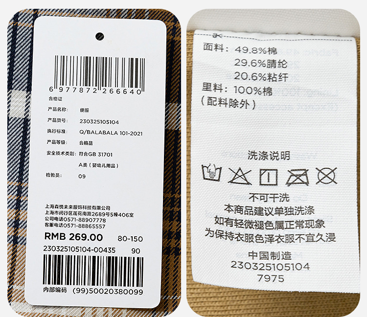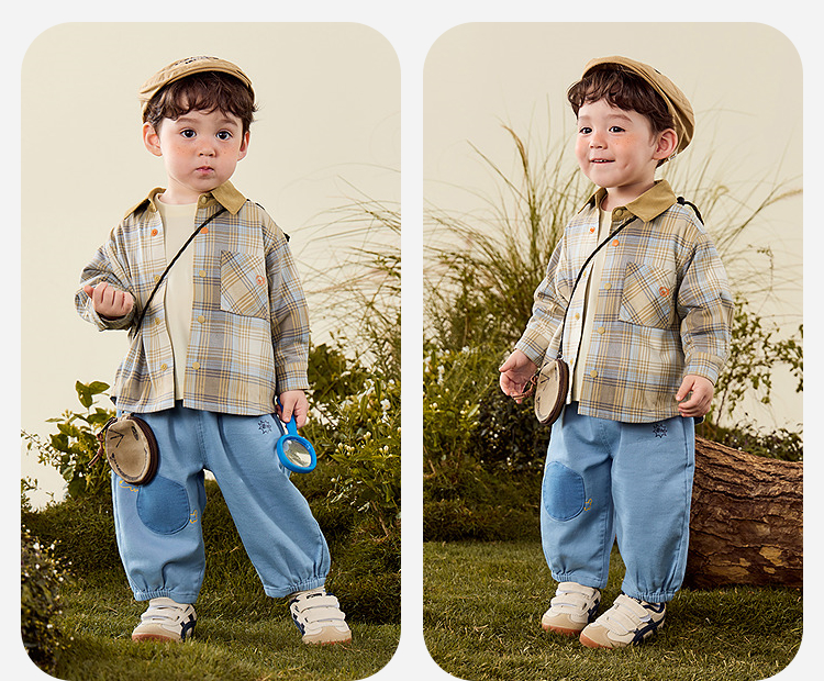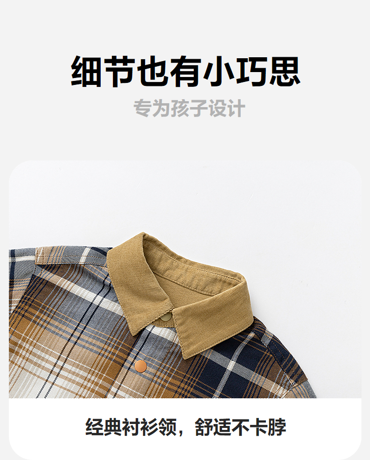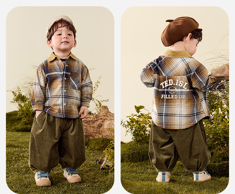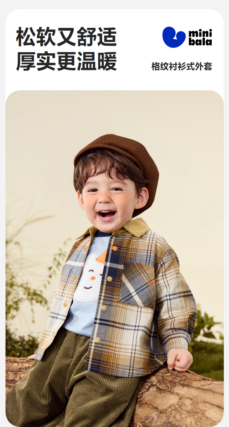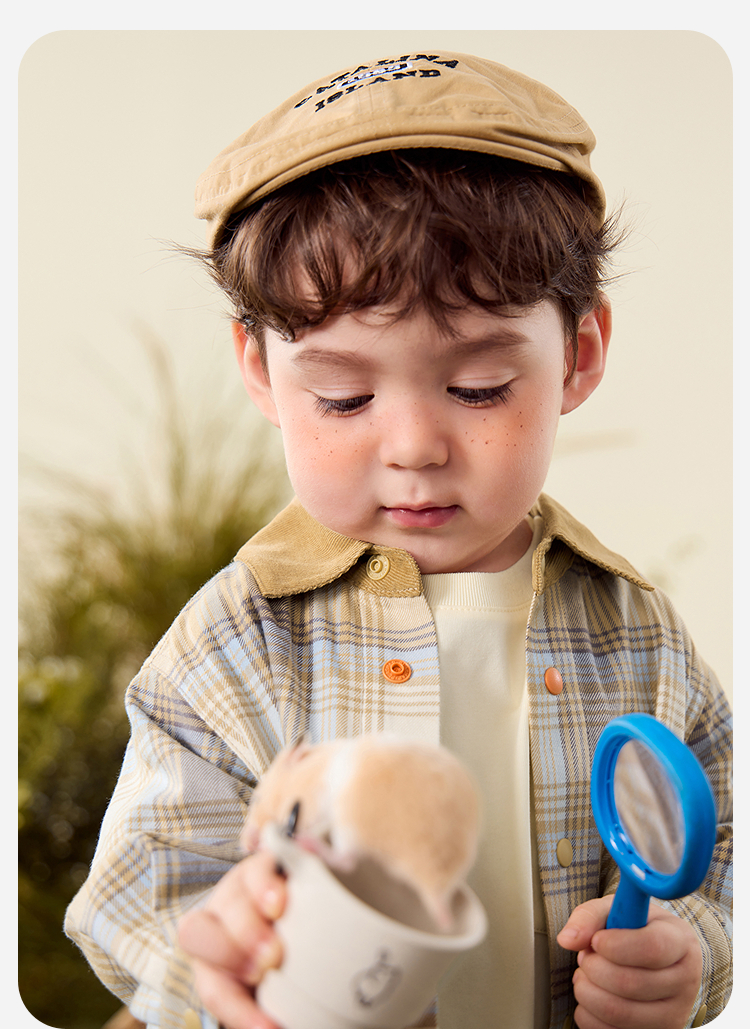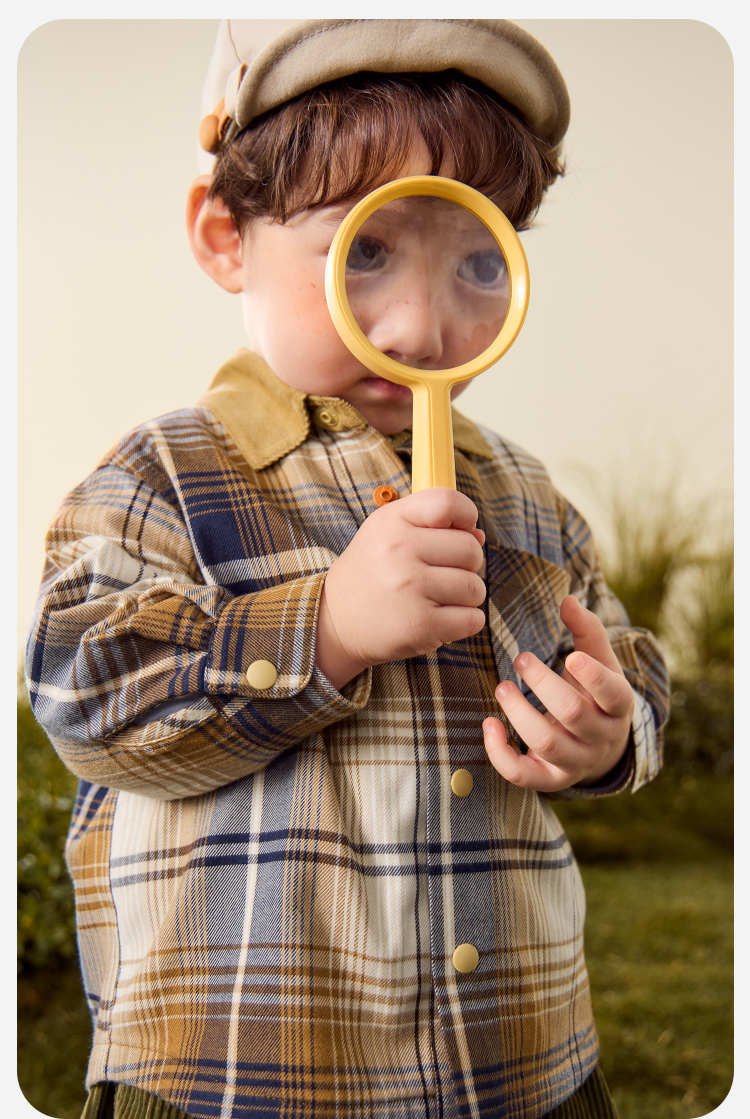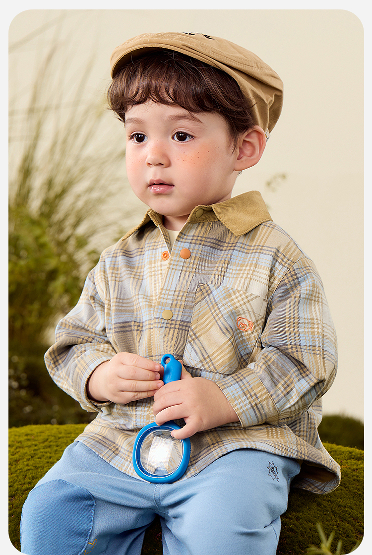 【泰迪熊联名】迷你巴拉男童经典学院风外套儿童格纹衬衫上衣