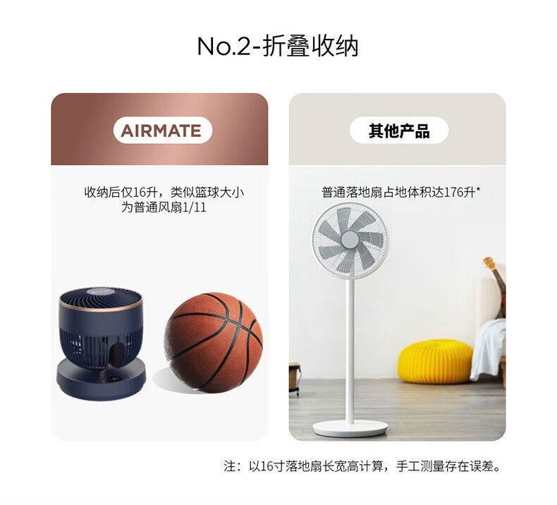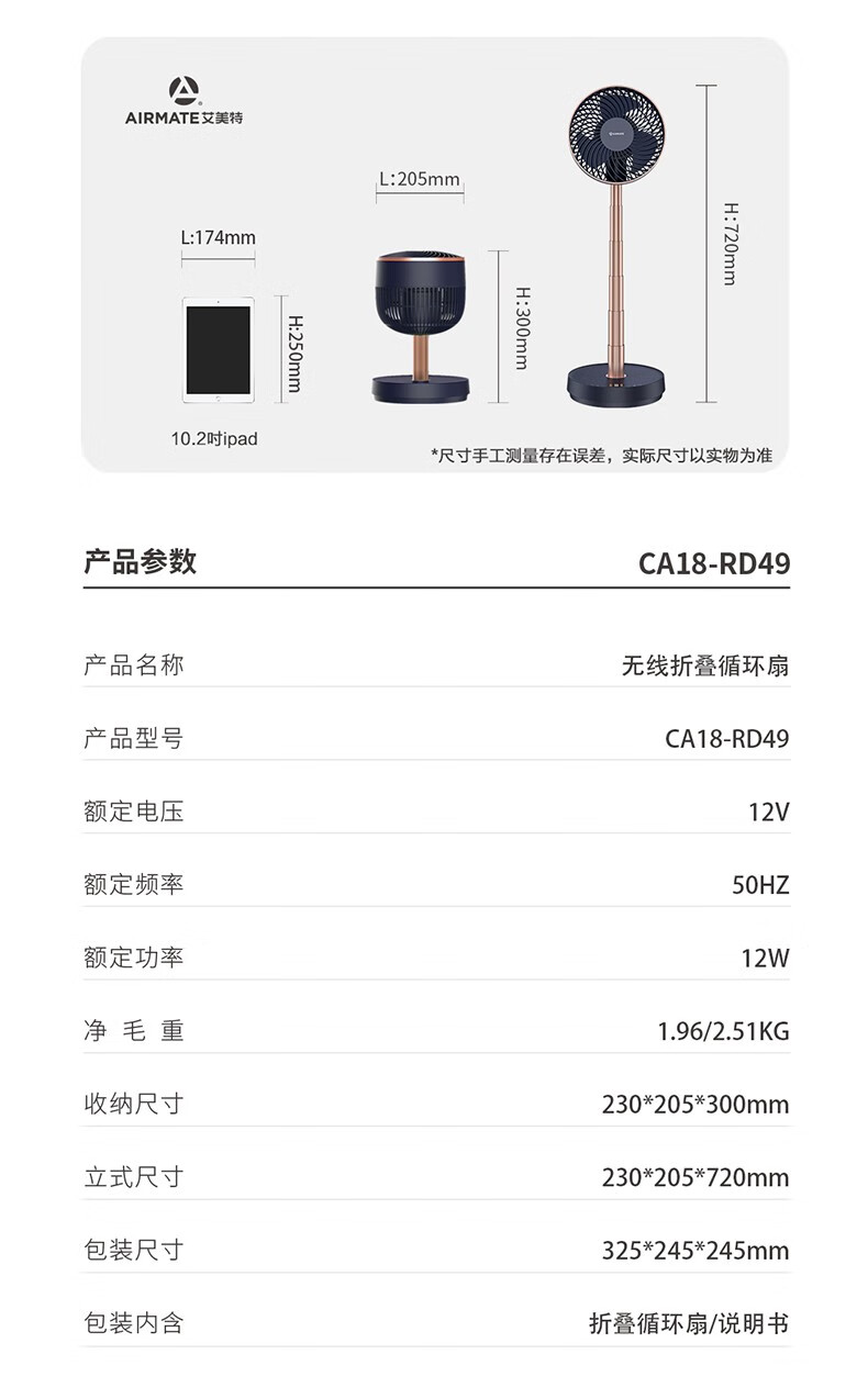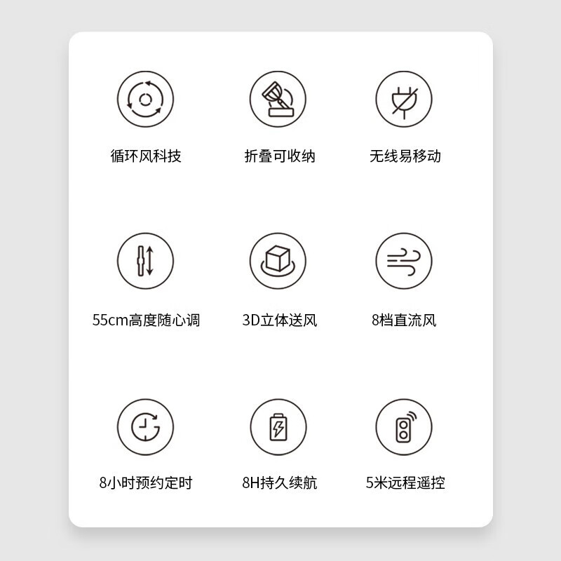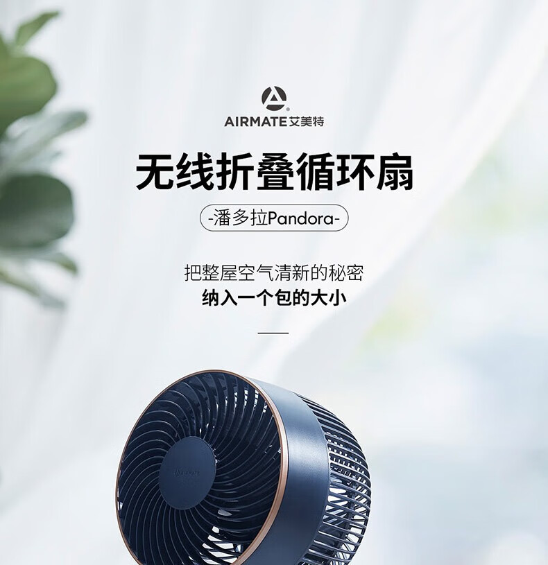 【艾美特潘多拉】艾美特(AIRMATE) 潘多拉循环扇无线折叠充电家用电风扇遥控定时落地扇大风量办公便携风扇免安装风扇 深邃蓝金CA18-RD49