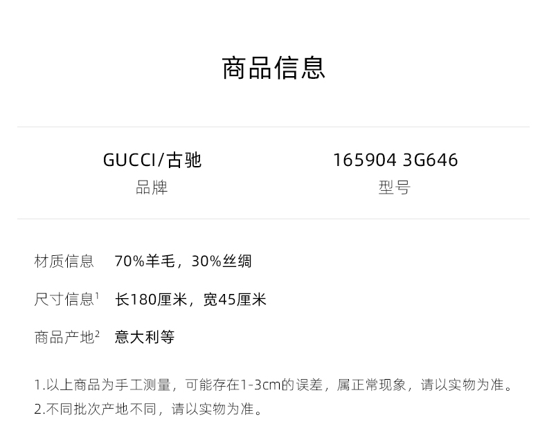 GUCCI 女士羊毛真丝围巾 165904粉色