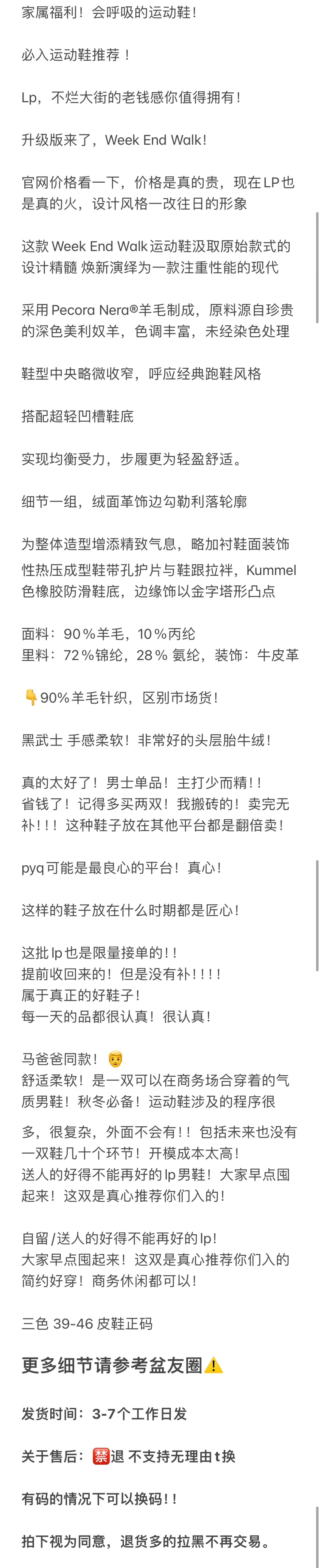 家属福利 重磅渠道 LP新款运动鞋 羊毛针织休闲鞋 Week End Walk城市休闲系带男士运动鞋