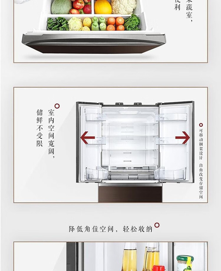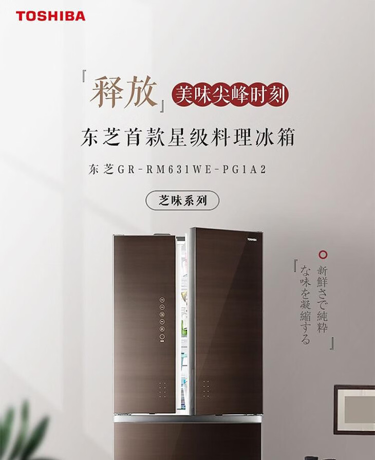 东芝(TOSHIBA)(12980)星级料理601升超大容量多门冰箱触控门 快速制冰ECO节能 风冷无霜一级能效 GR-RM631WE-PG1A2