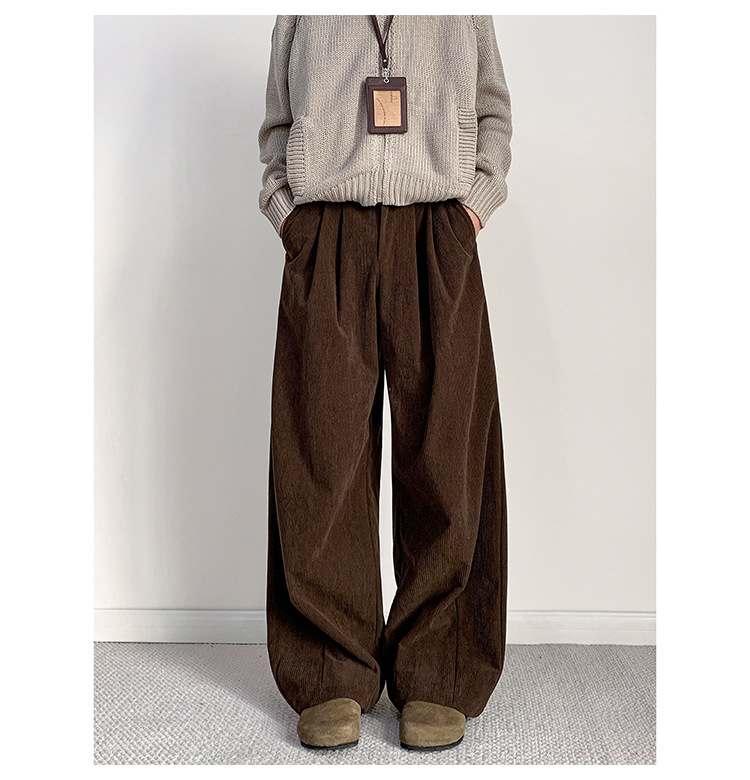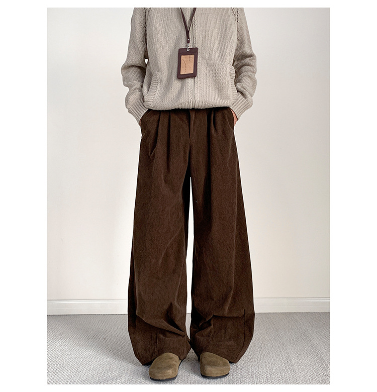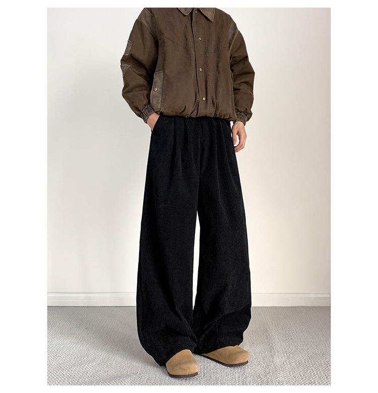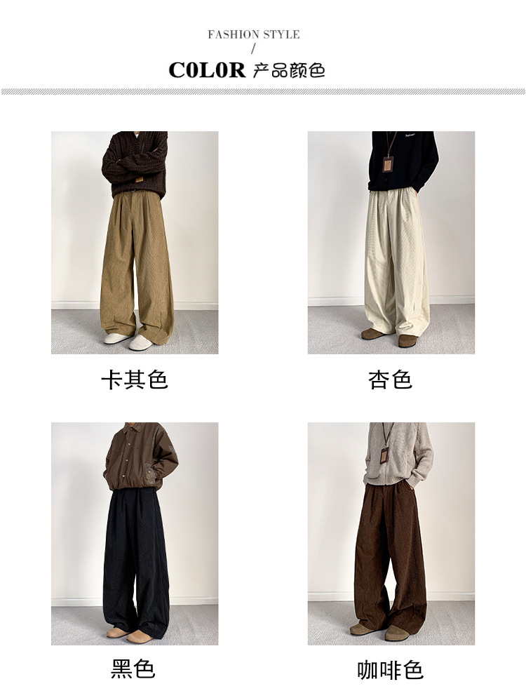 【GZ】无忧购灯芯绒男裤子秋冬加绒加厚老钱风宽松垂感阔腿休闲裤A8071(截单后3-5天发货)