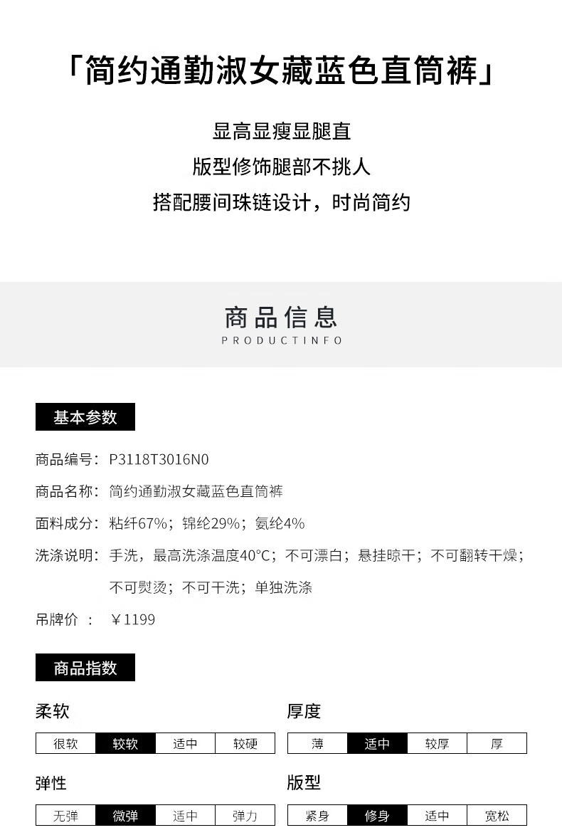 皮尔卡丹女装西装裤简约百搭干练通勤直筒西裤P3118T3016N0