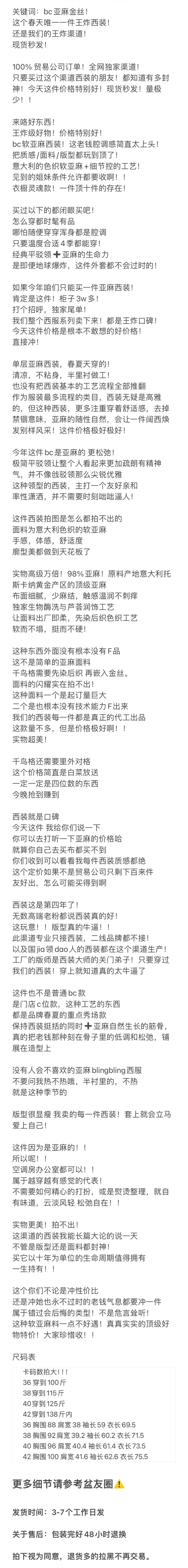 量少无补!重磅 bc亚麻金丝西装 春夏意大利亚麻/金丝 醋酸真丝内里