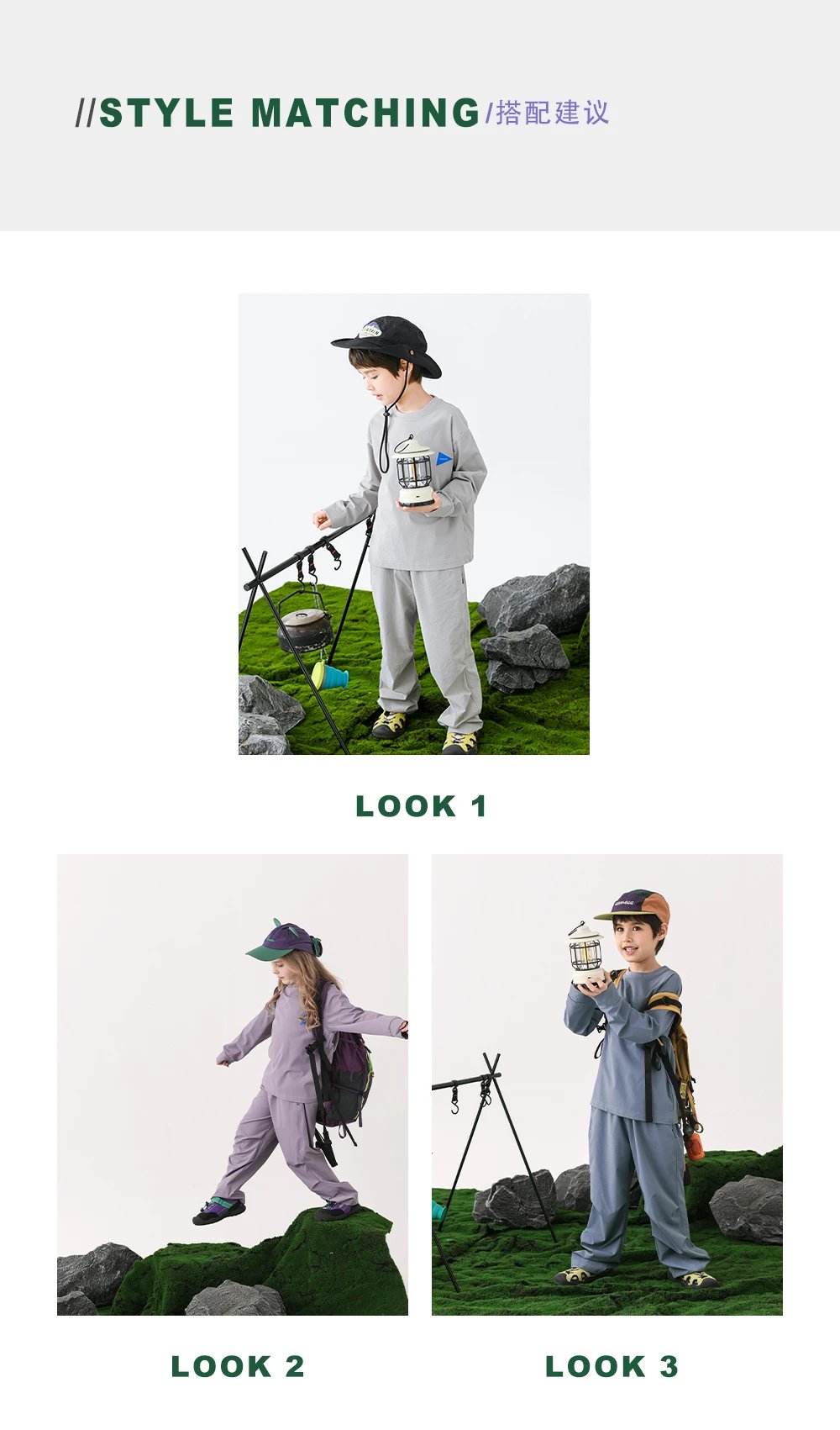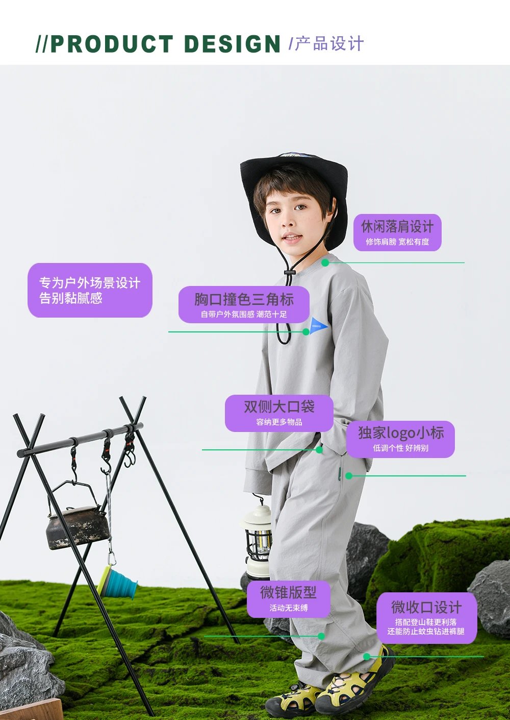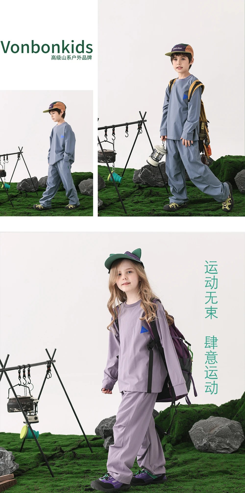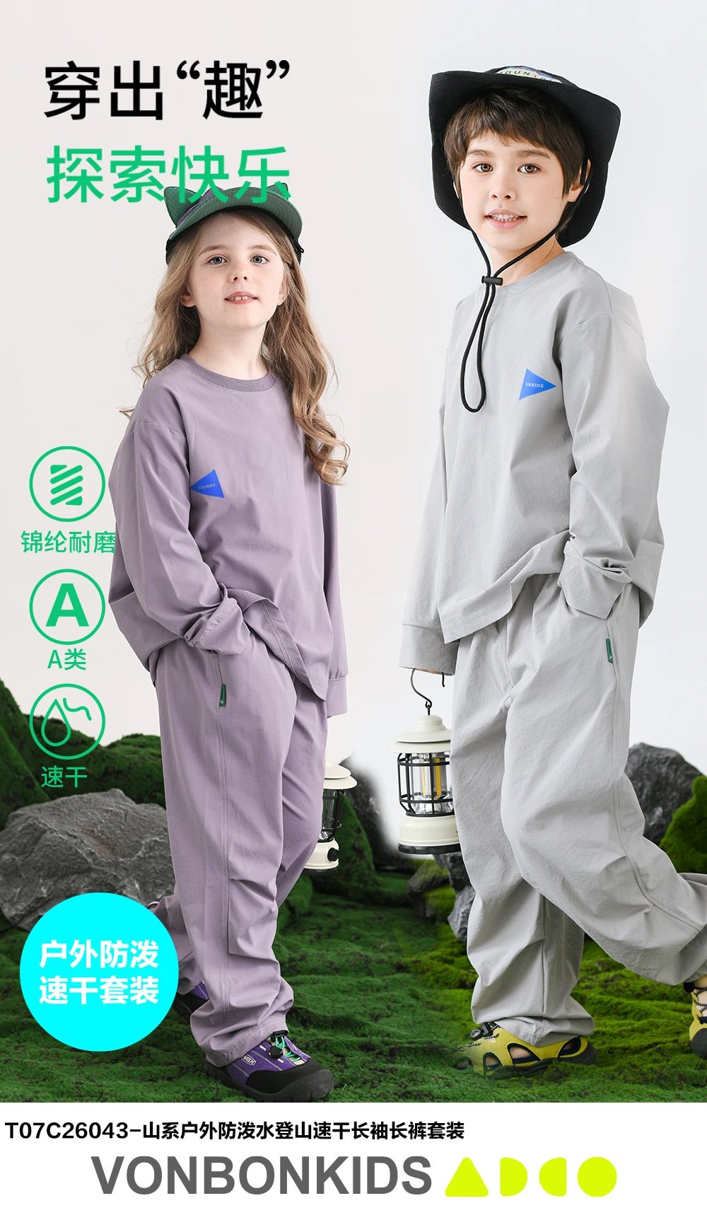 vonbonkids 2026春季山系户外防泼水登山速干长袖长裤套装 T07C26043