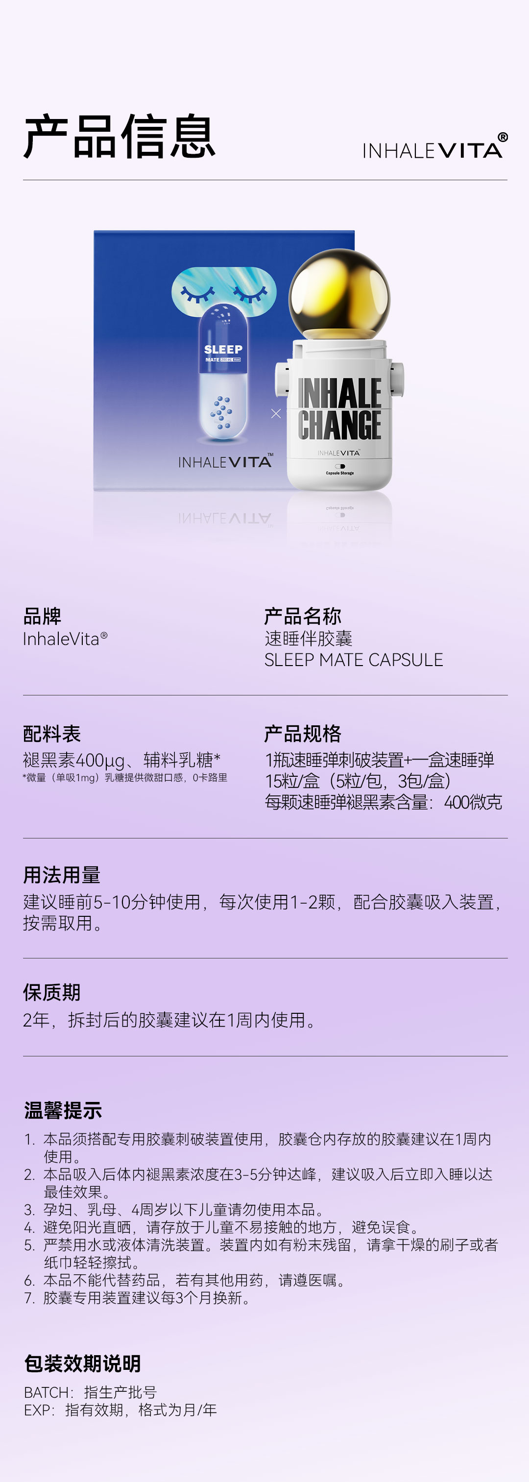 InhaleVita速睡伴美国进口吸入褪黑素非安瓶入睡好眠深度睡眠失眠