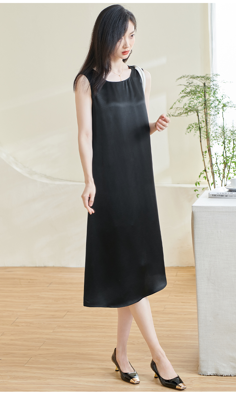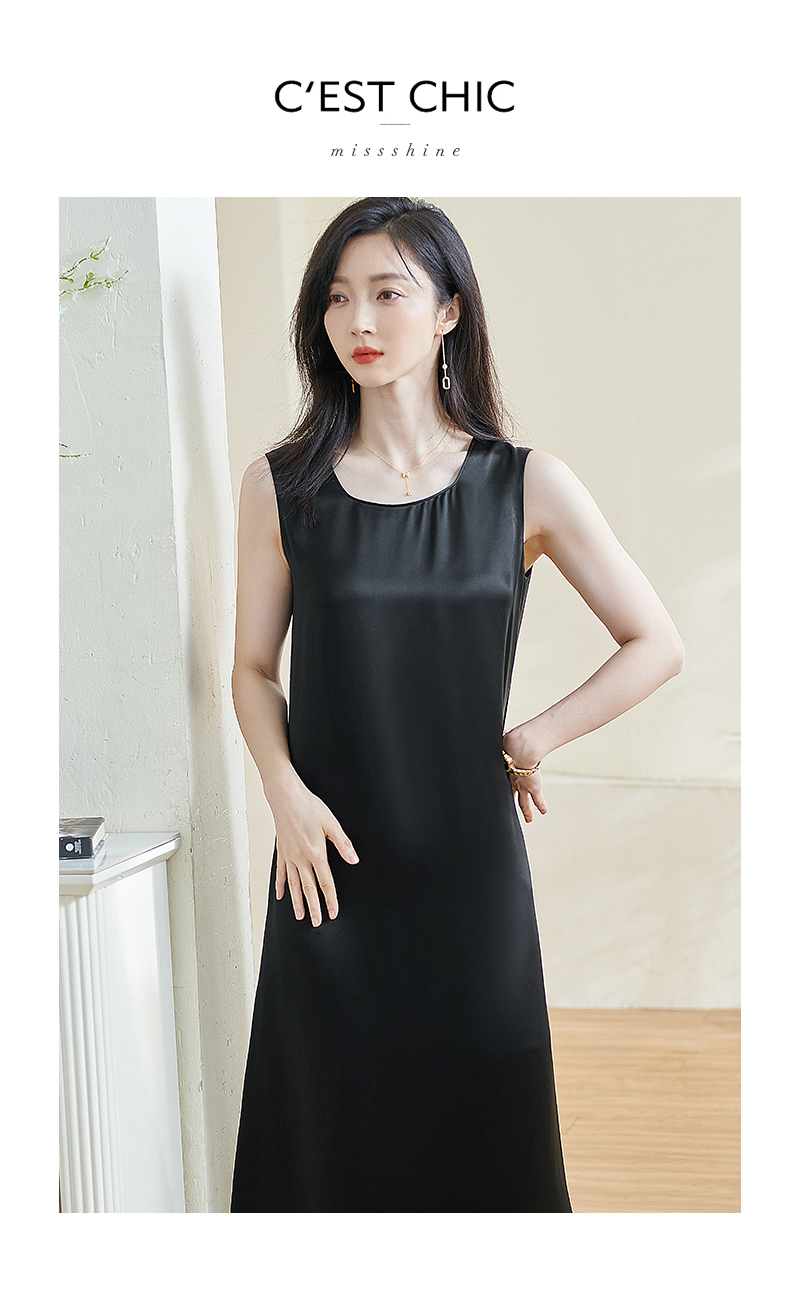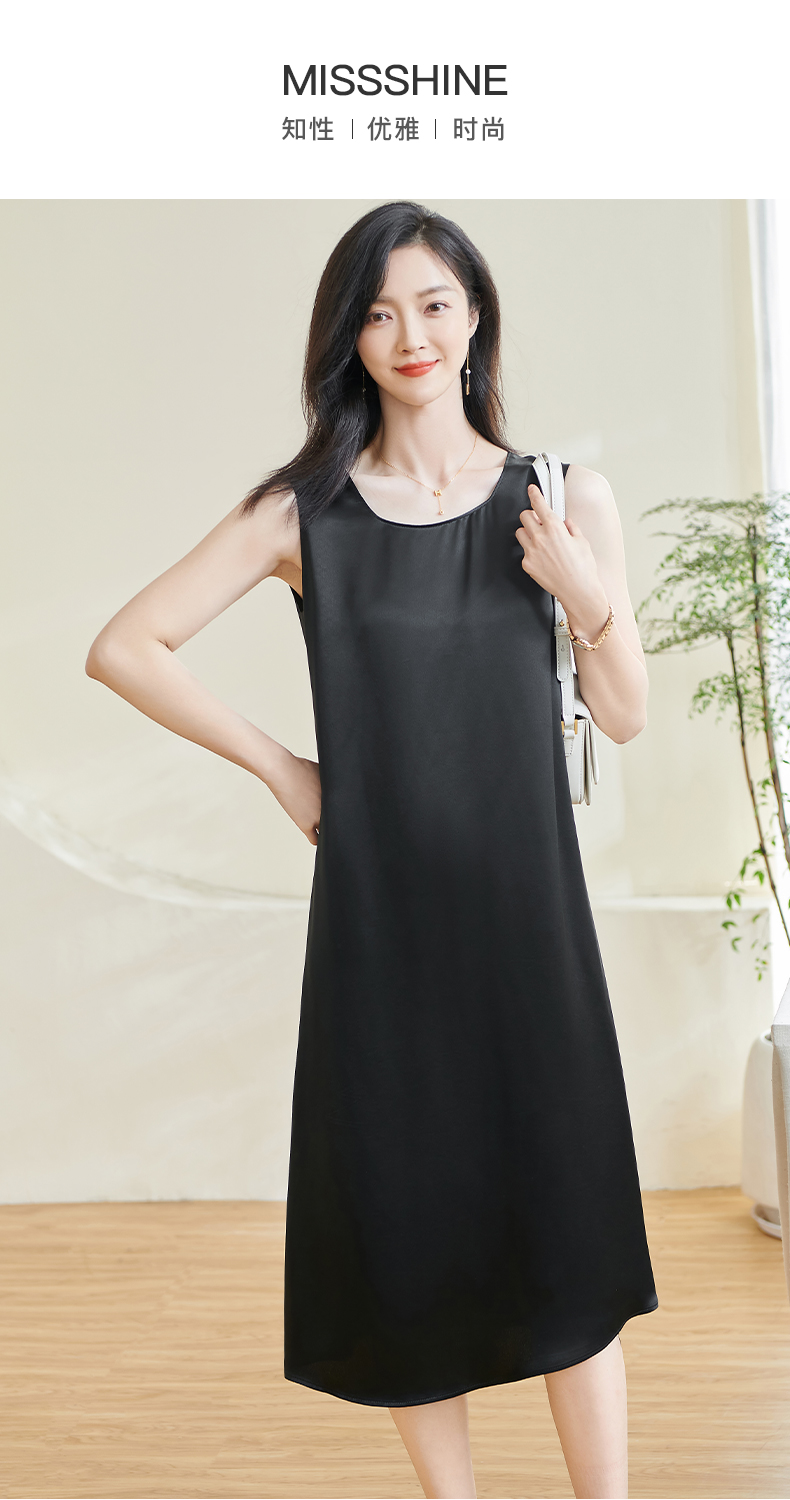 米思阳2025夏季新款通勤简约风连衣裙知性经典百搭圆领连衣裙0738