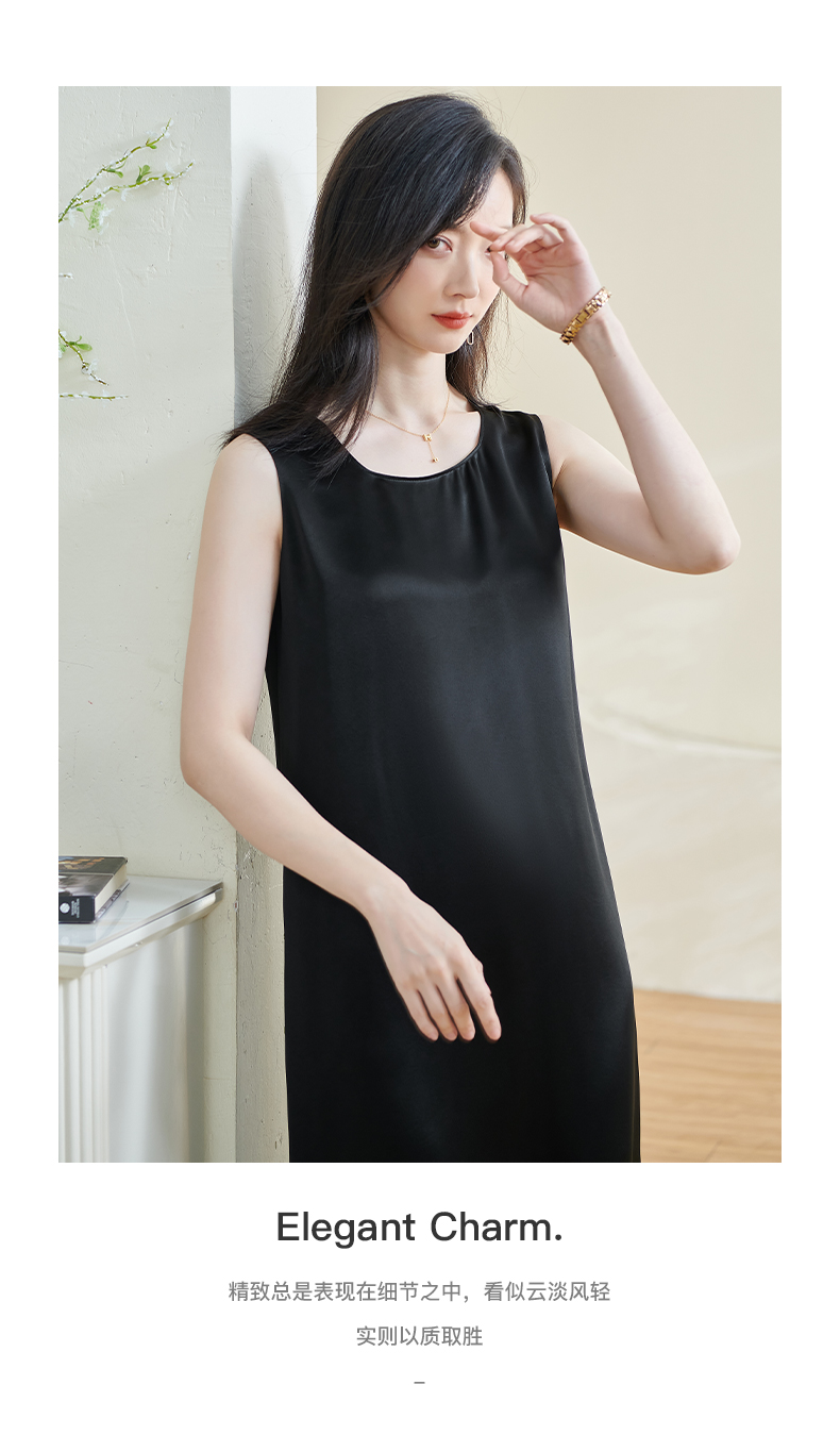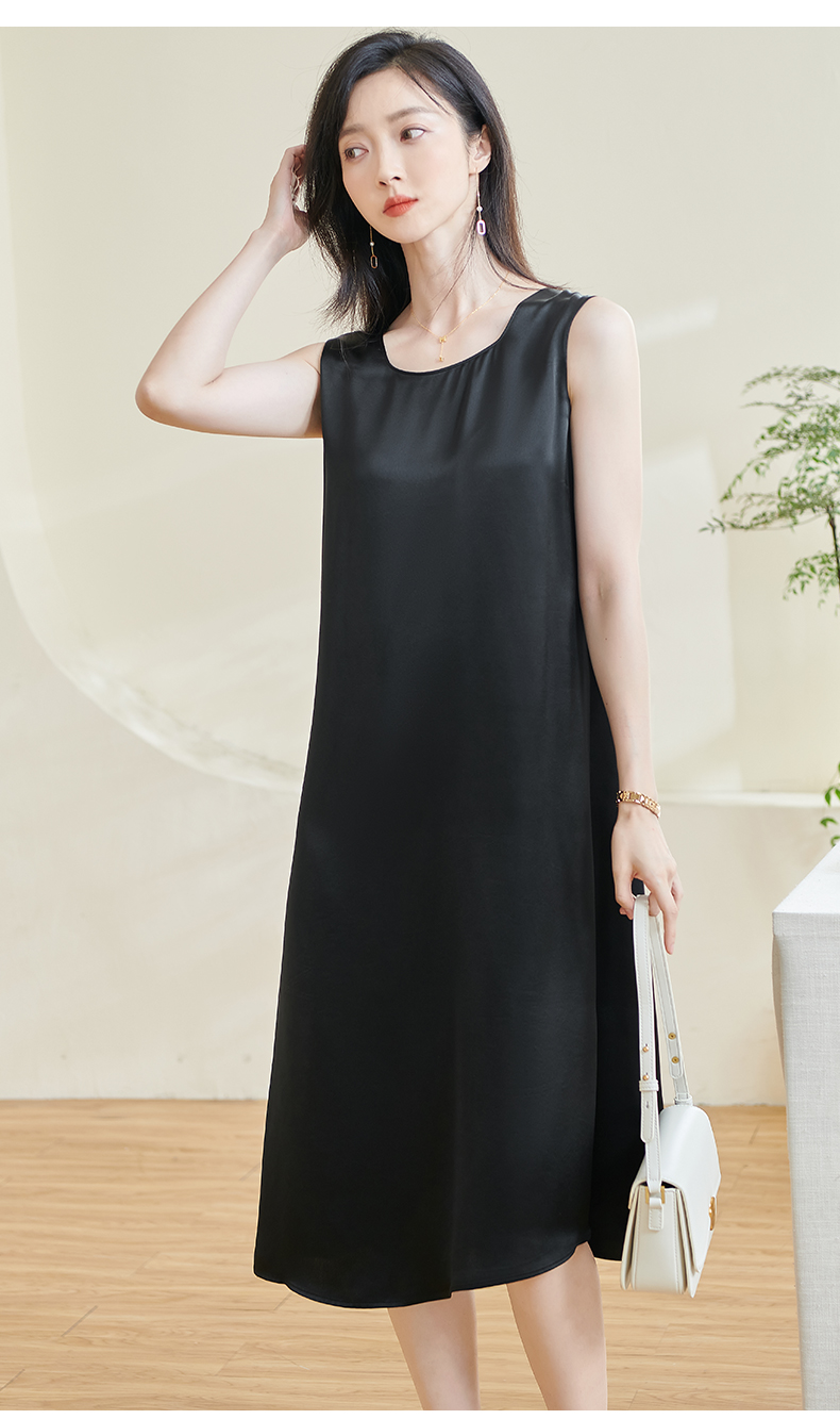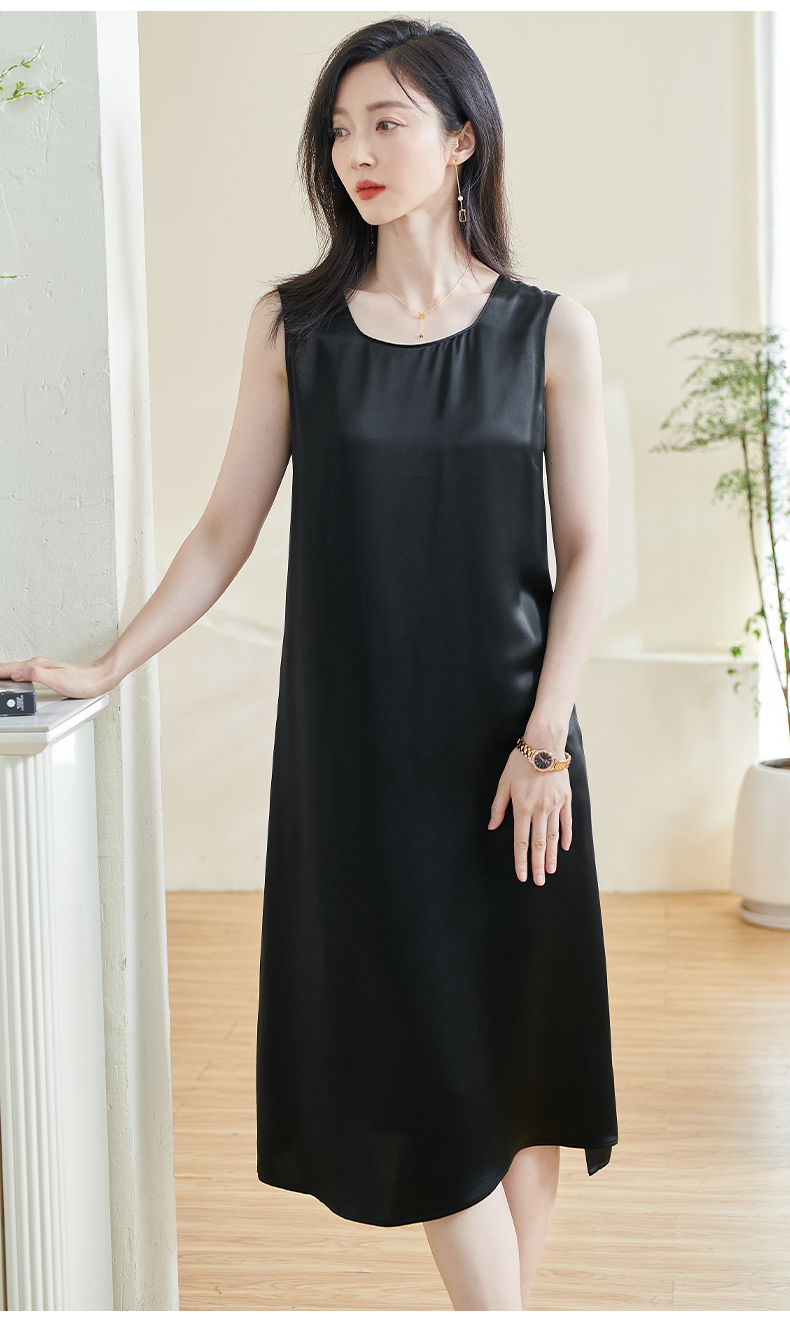 米思阳2025夏季新款通勤简约风连衣裙知性经典百搭圆领连衣裙0738