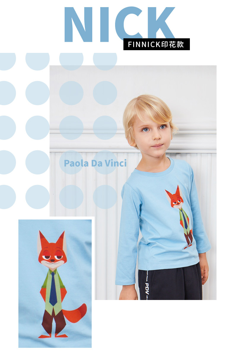 Paola Davinci秋冬新款迪士尼男童长袖T恤中小童圆领纯棉打底衫