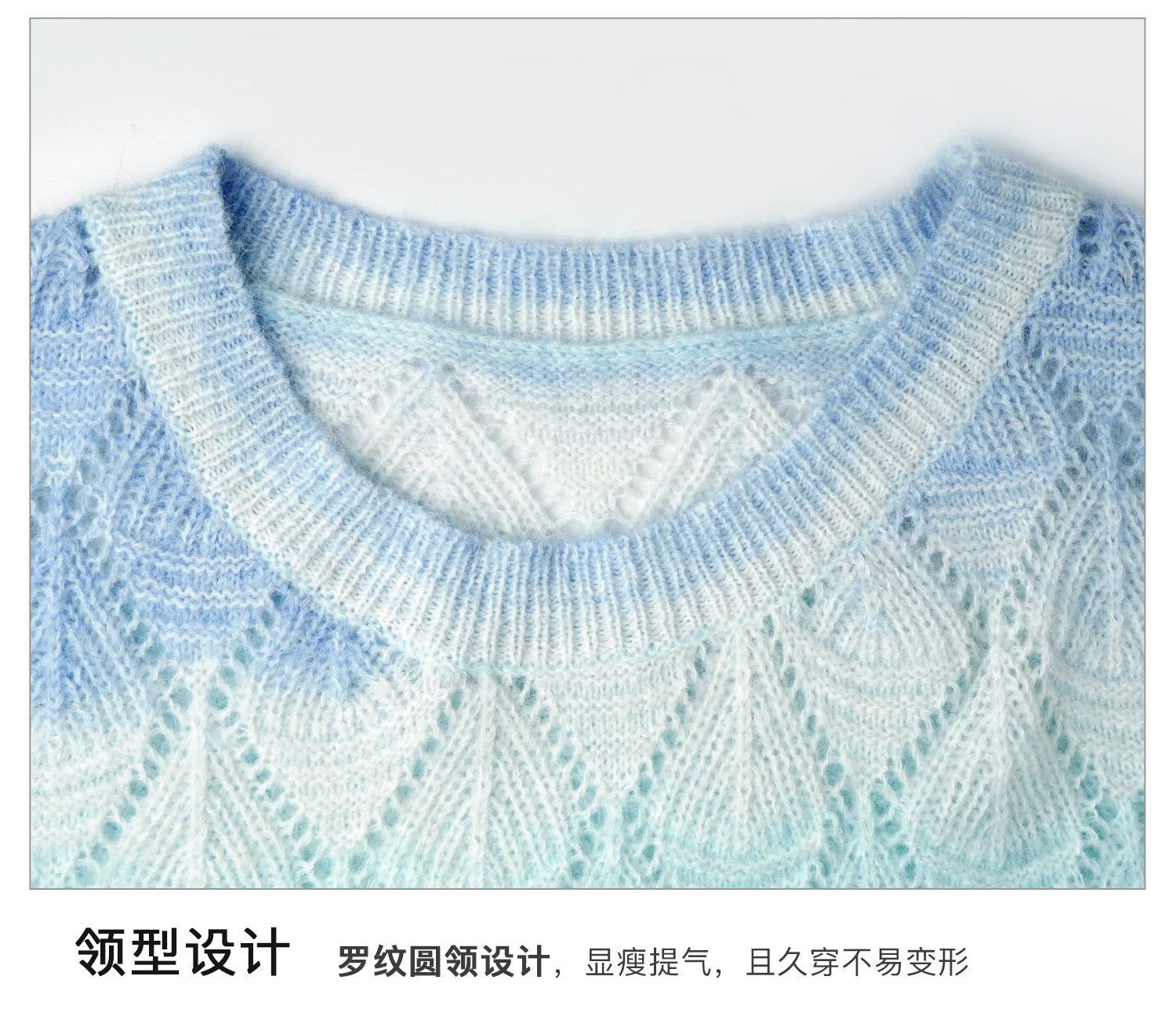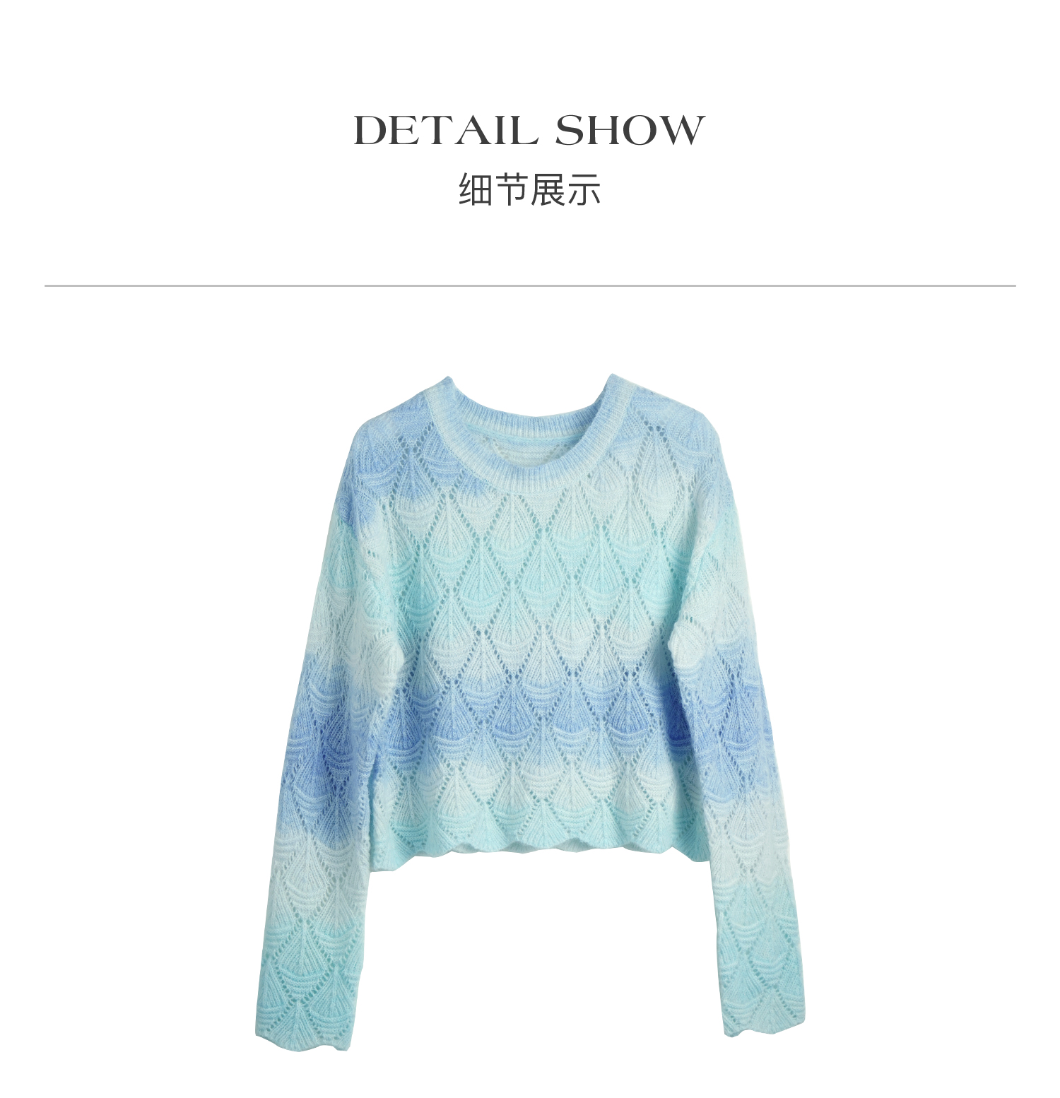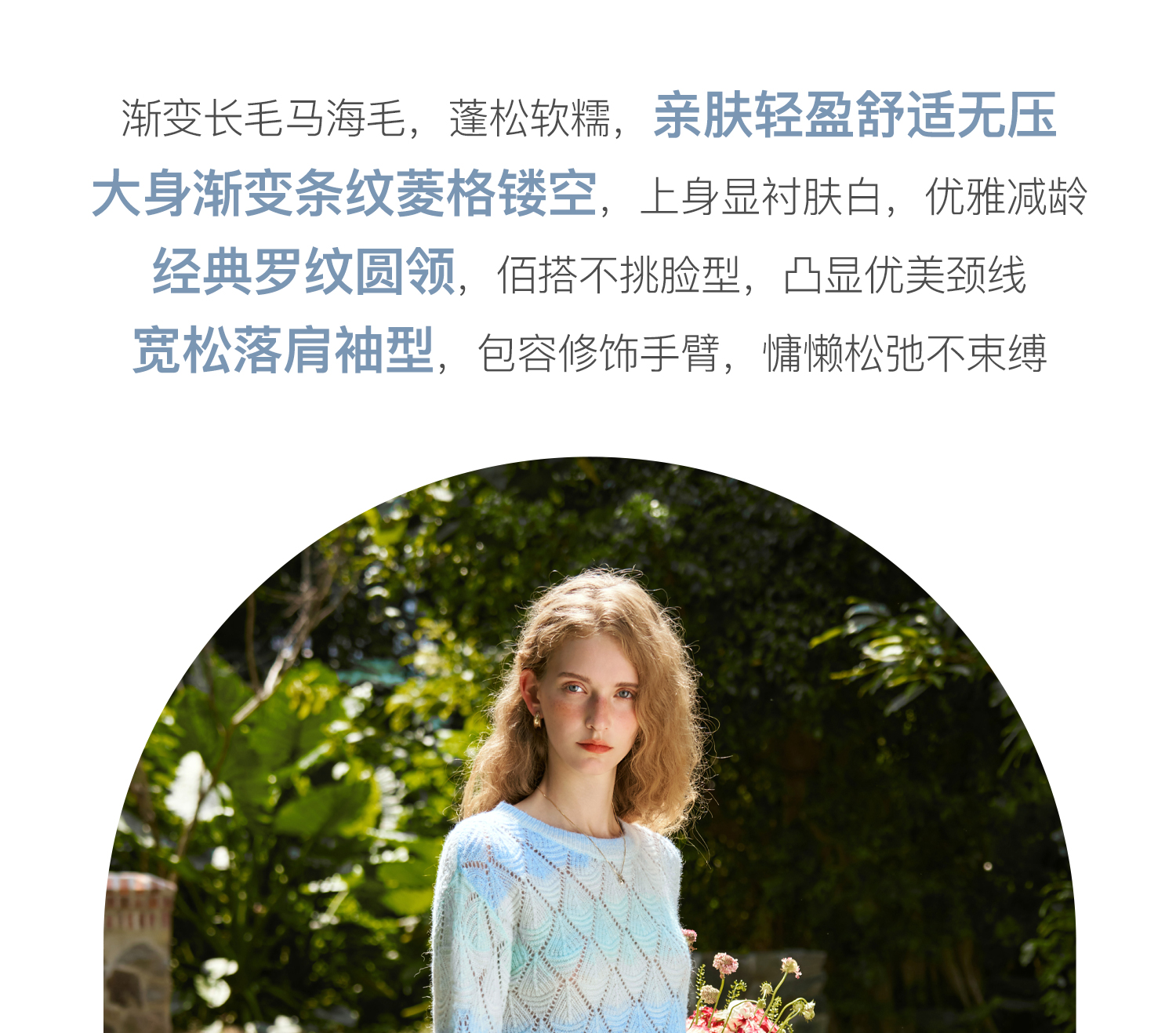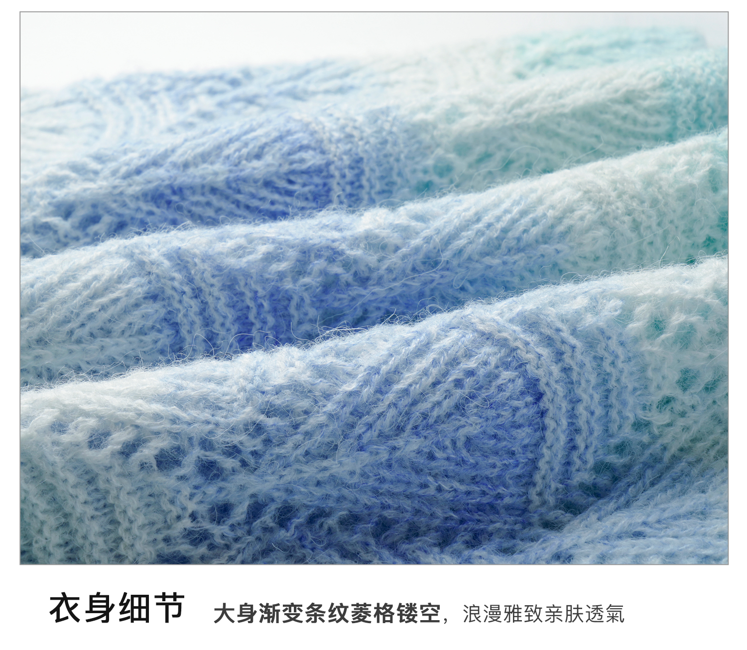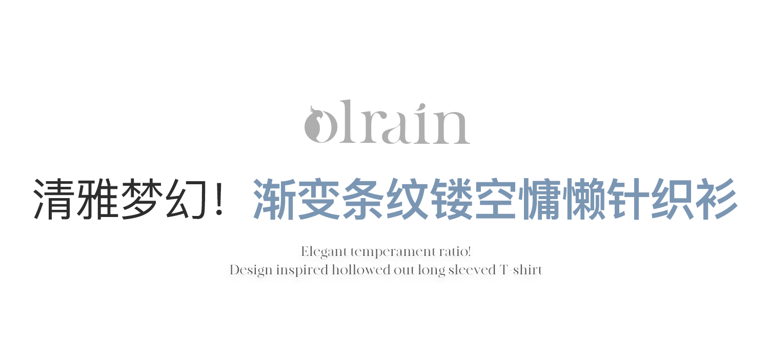 OLrain欧芮儿渐变条纹镂空针织衫女秋2024新款慵懒长袖套头薄上衣