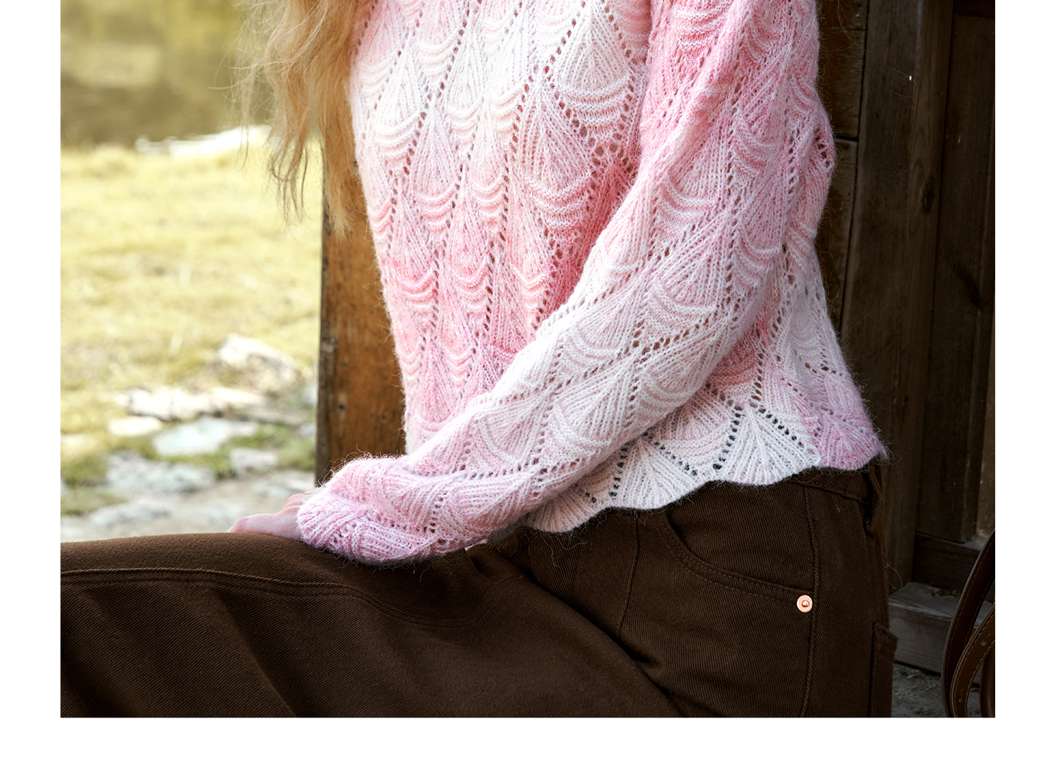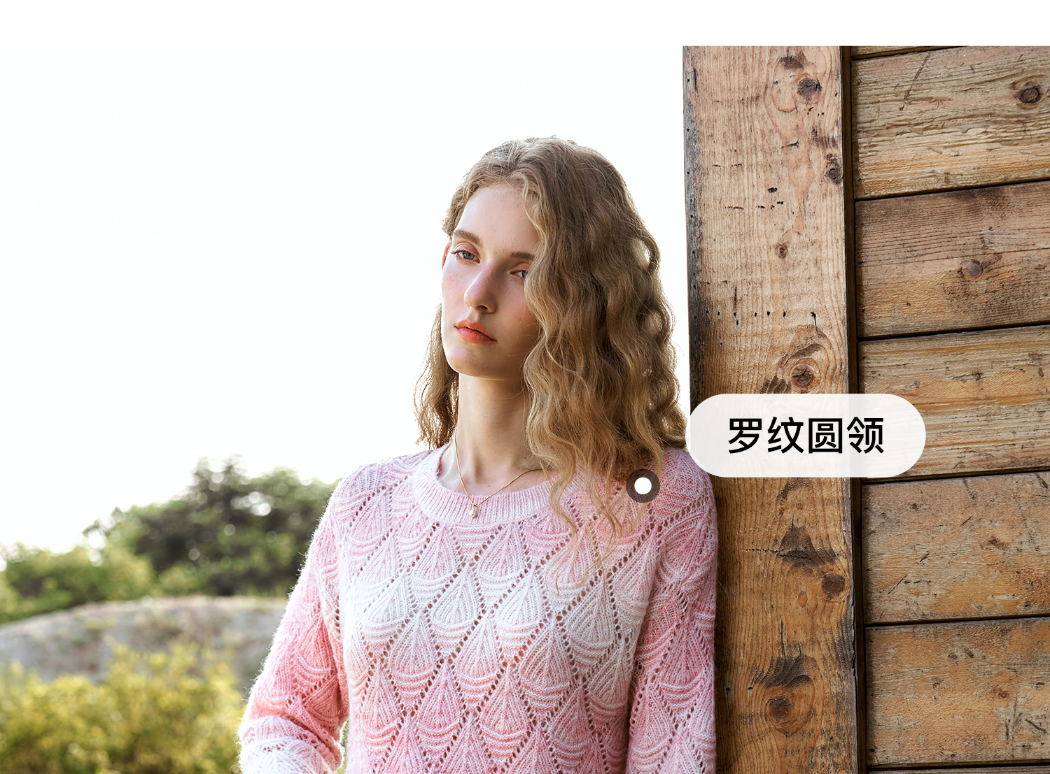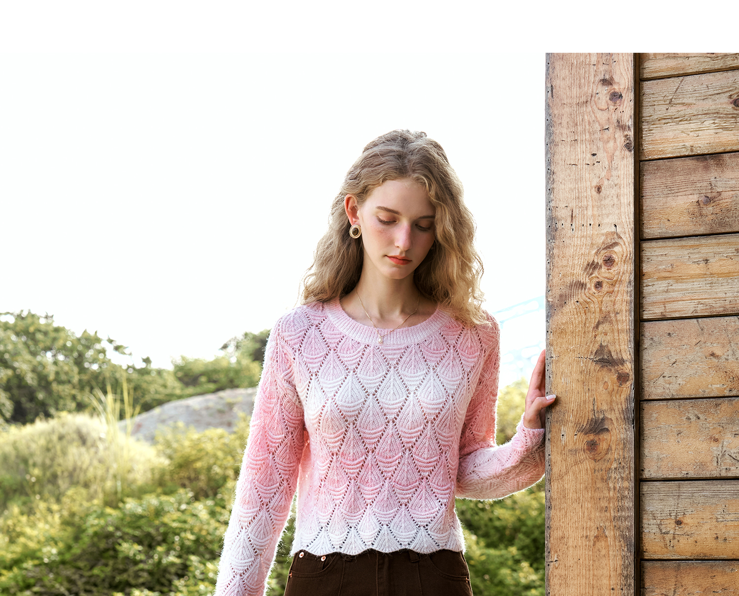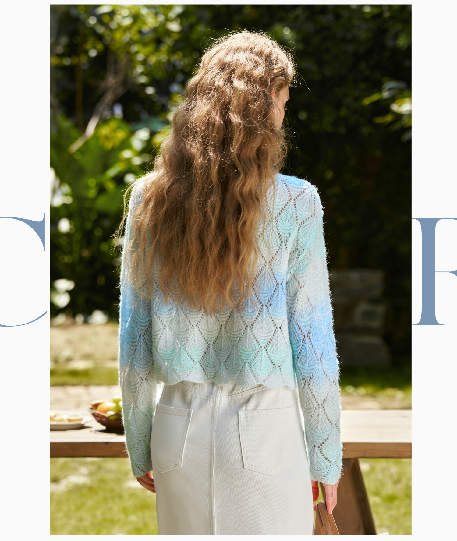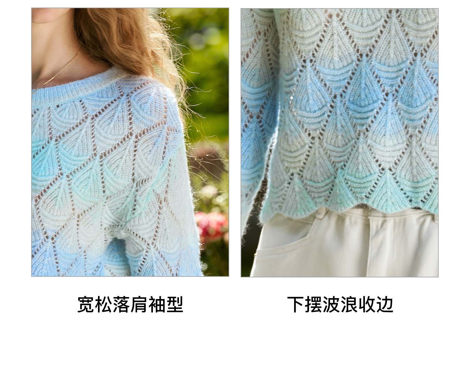 OLrain欧芮儿渐变条纹镂空针织衫女秋2024新款慵懒长袖套头薄上衣